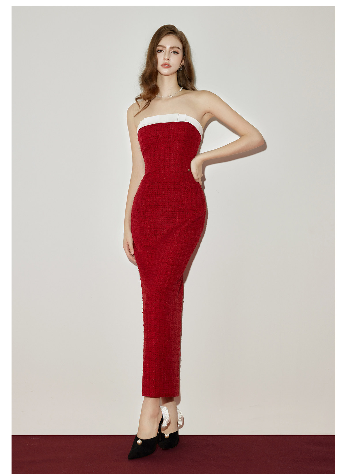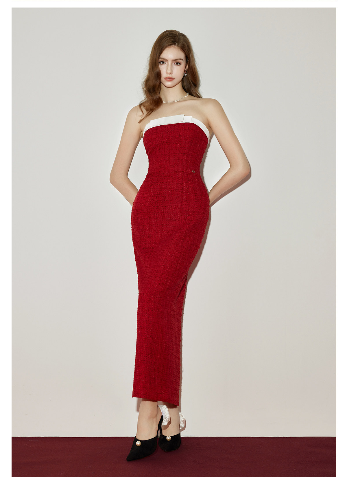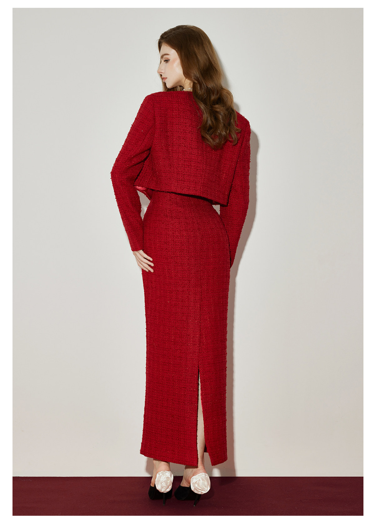 Abby Bow Small Fragrant Skincare Long Dress Set S Christmas red jacket Set RESSALINA
