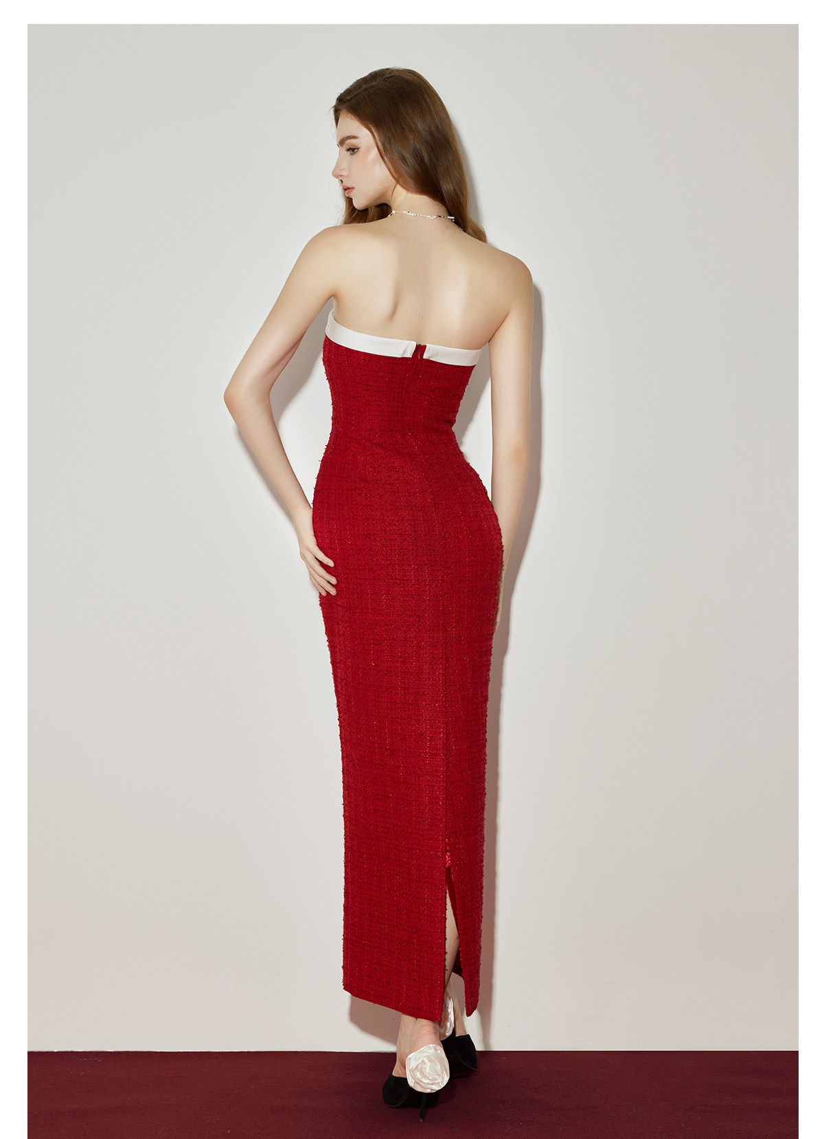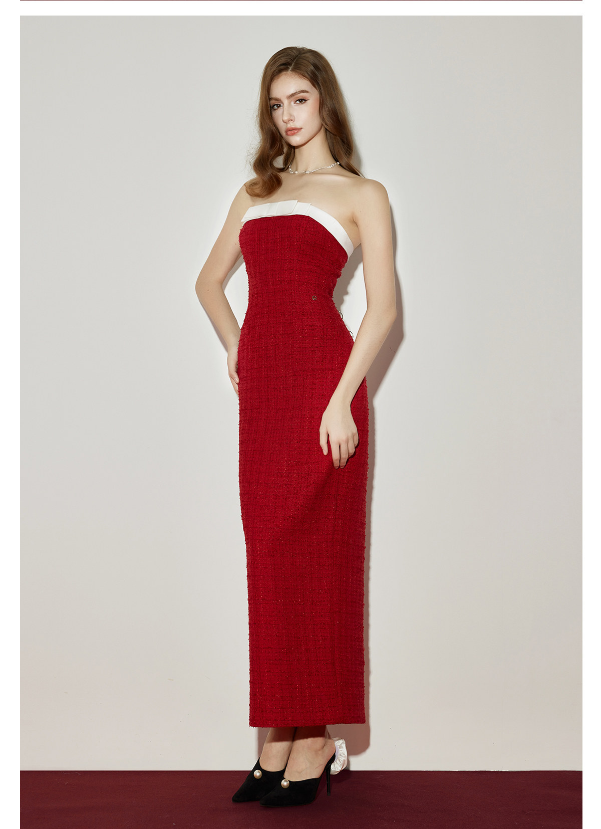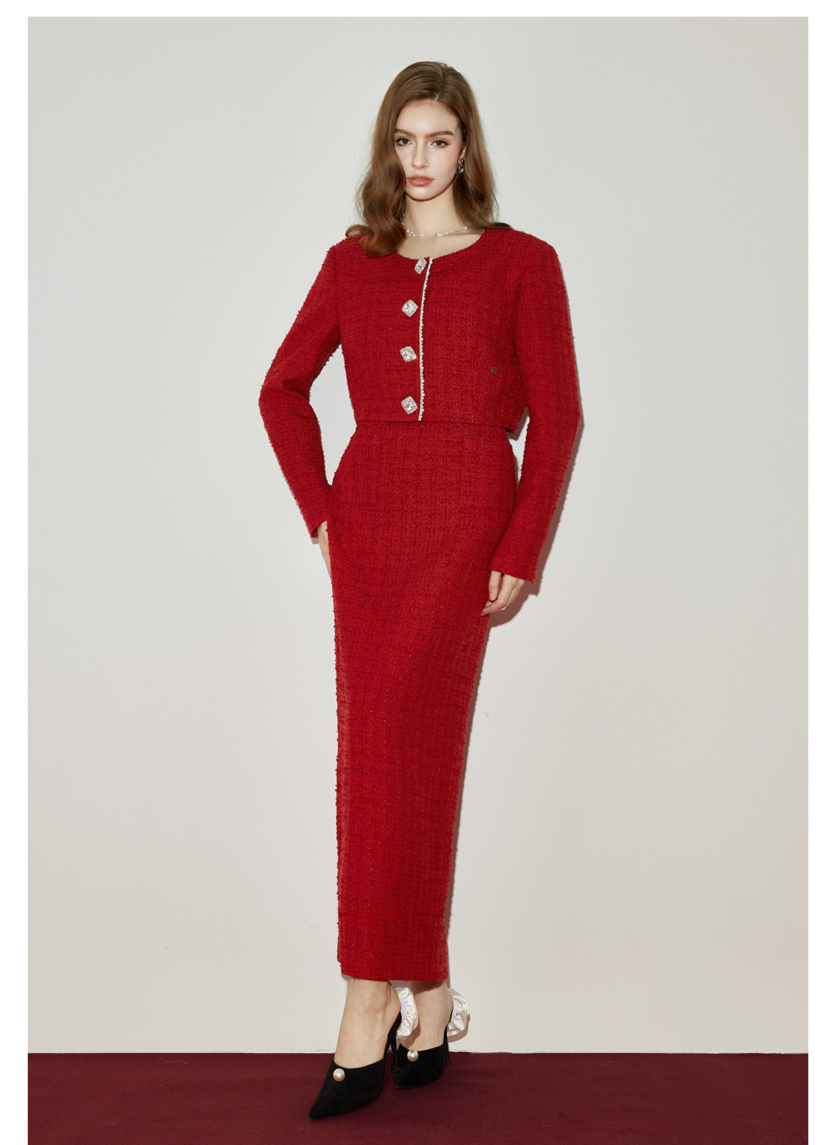 Abby Bow Small Fragrant Skincare Long Dress Set S Christmas red jacket Set RESSALINA
