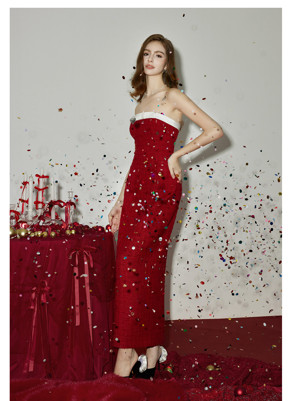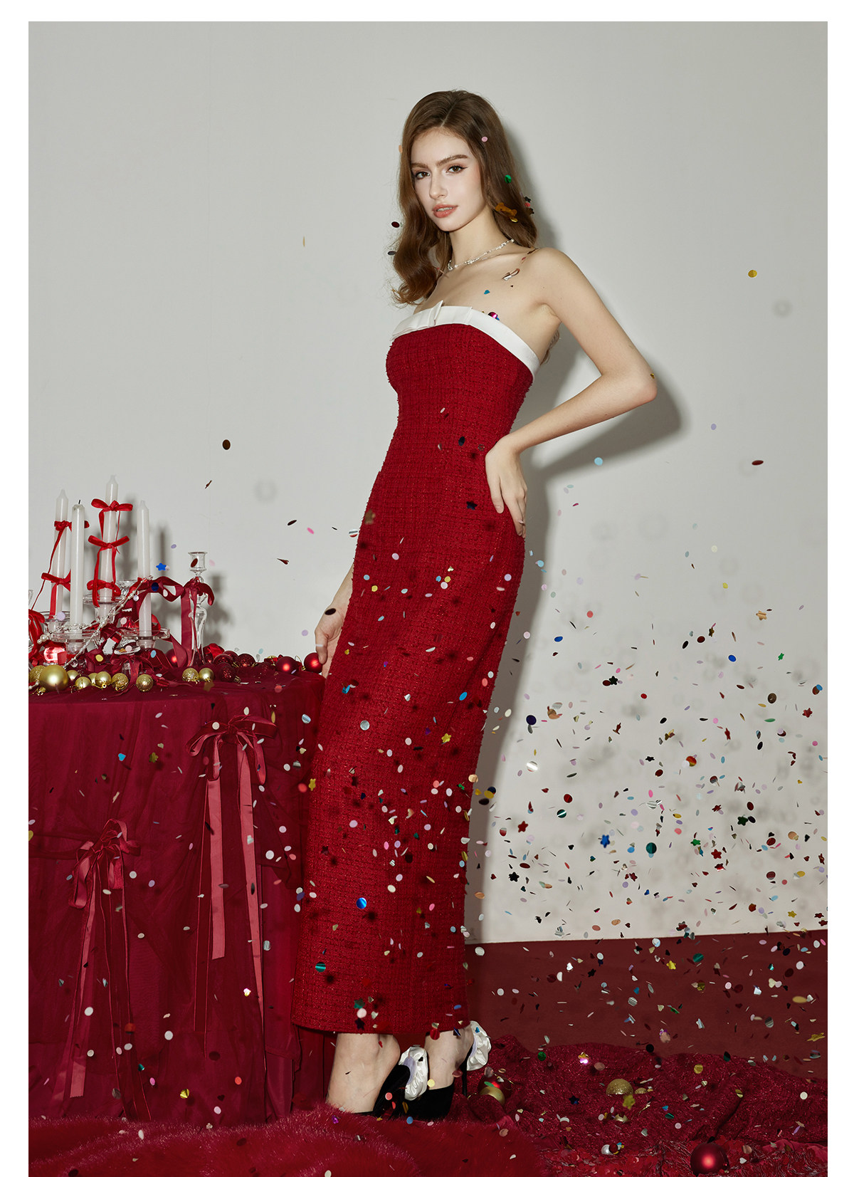 Abby Bow Small Fragrant Skincare Long Dress Set S Christmas red skirt Set RESSALINA