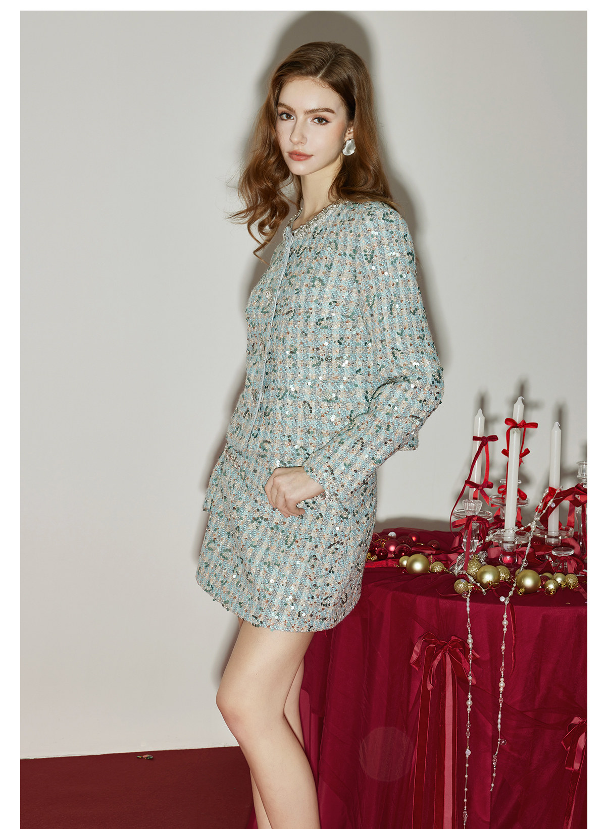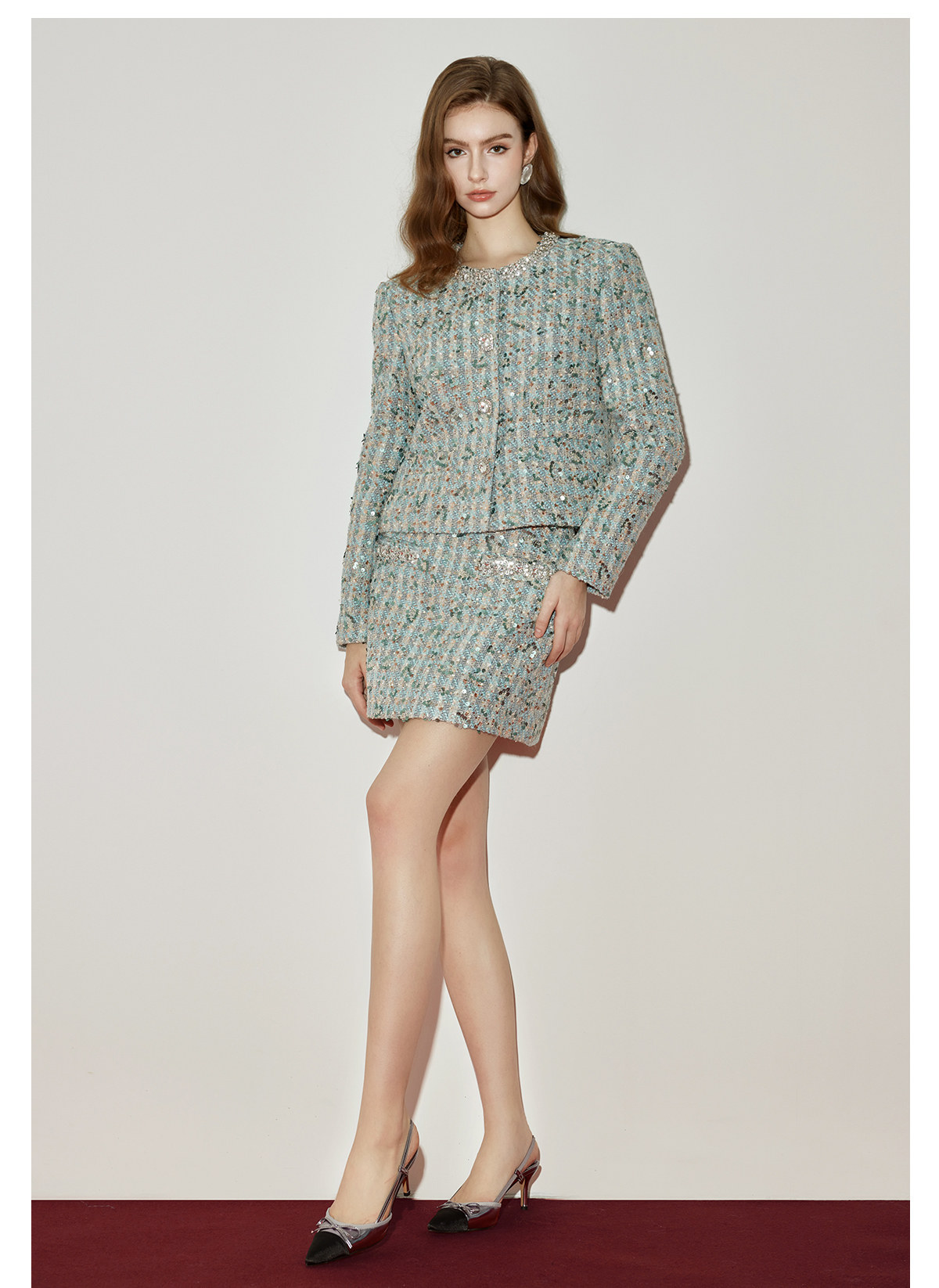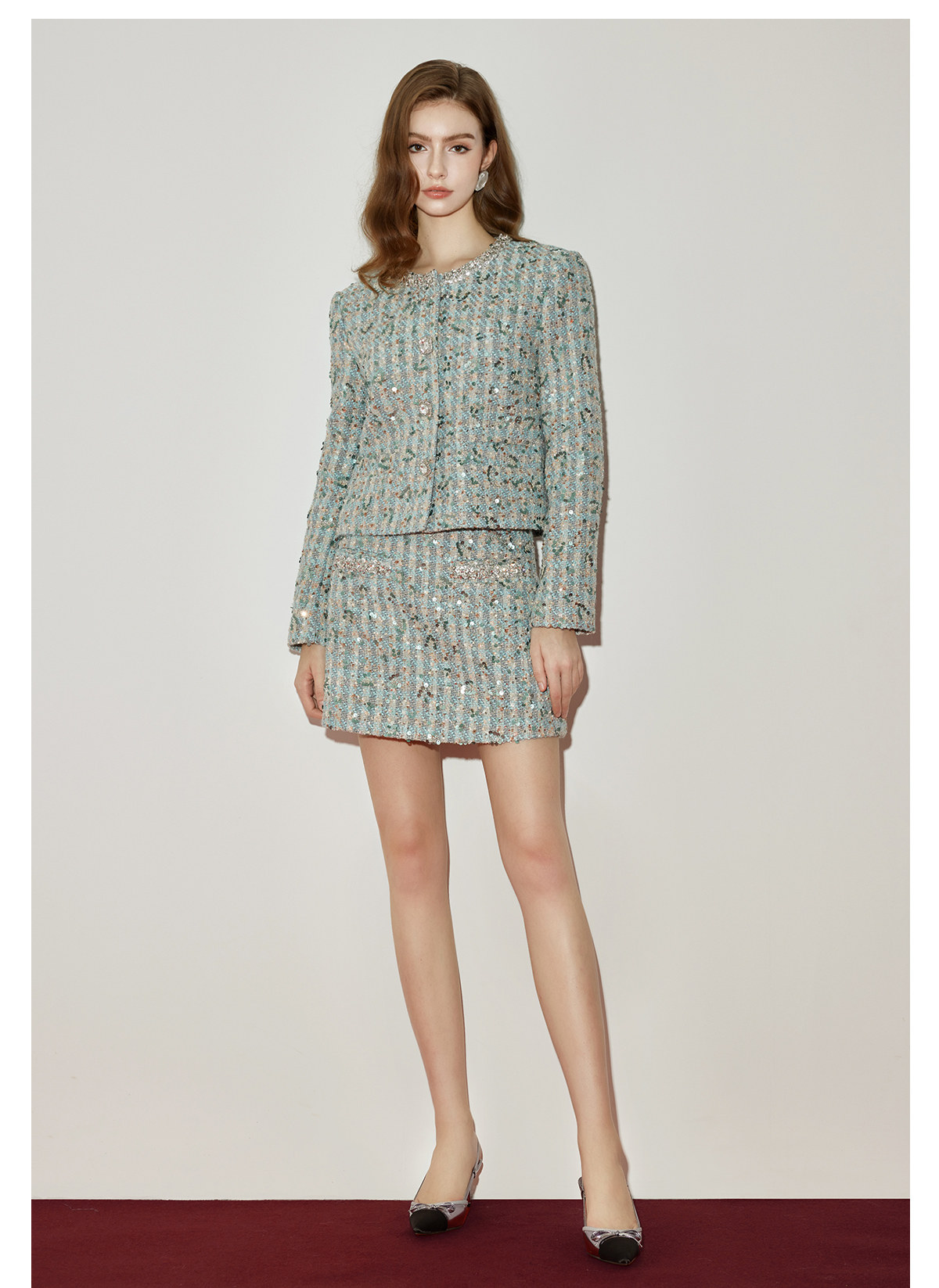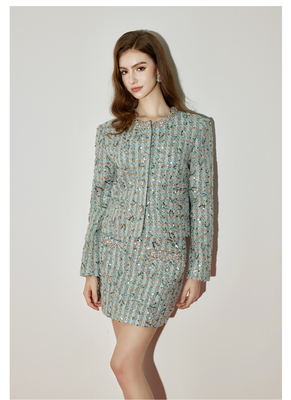 Patricia Exquisite Nail Bead Diamond Buckle Small Fragrant Half Skirt Set Coarse Floral Coat