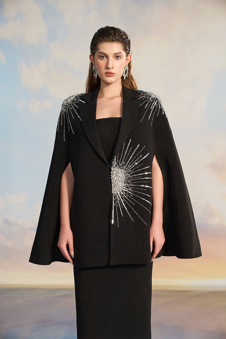 Special Features Sunburst attached with sequin and crystal, V-neck with notch lapel, Padded shoulder