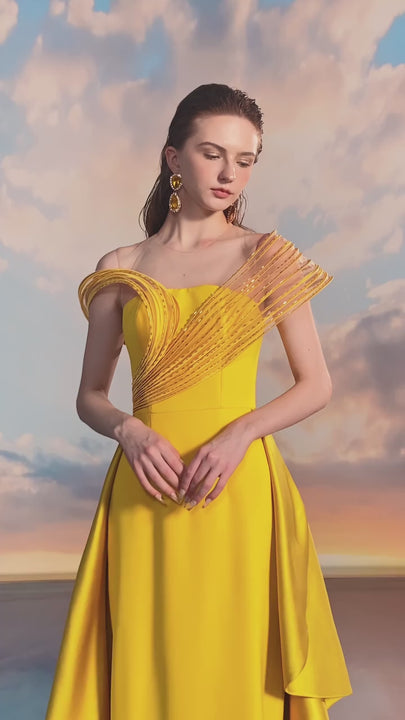 Expertly designed, the dress adds a touch of elegance to any occasion. The A-line silhouette and asymmetric shoulder create a flattering and modern look. Crafted from high-quality chiffon, this dress offers both style and comfort.