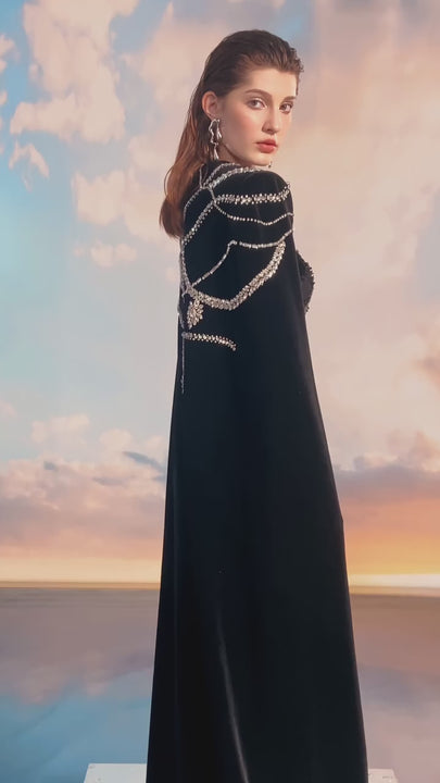 | Special Features | Square padded shoulder, Vine rhinestone attach on the shoulder and back, Hidden back zipper |