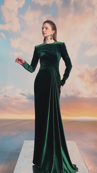 Hellen Sheath Extended Flap Velvet Floor Length Dress
