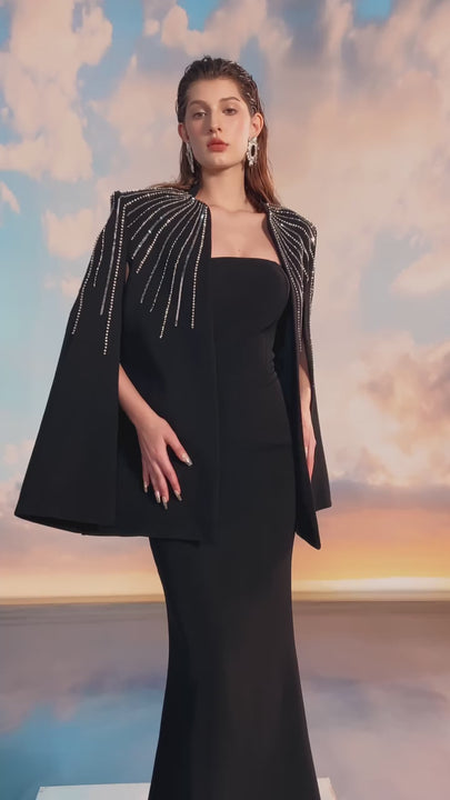 Experience flowing elegance with our dress. The mermaid straight across neck design flatters while the crepe fabric adds a touch of luxury. Achieve a stunning look for any formal event with this timeless dress.