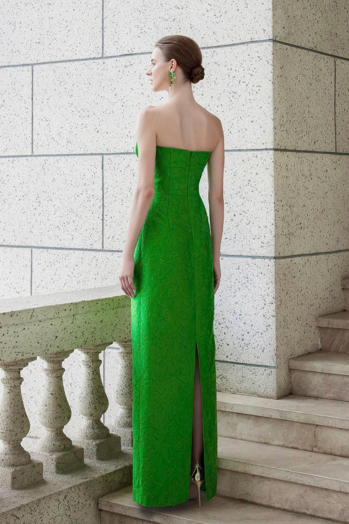 Visage Strapless Straight Across Neck Jacquard Floor Length Dress