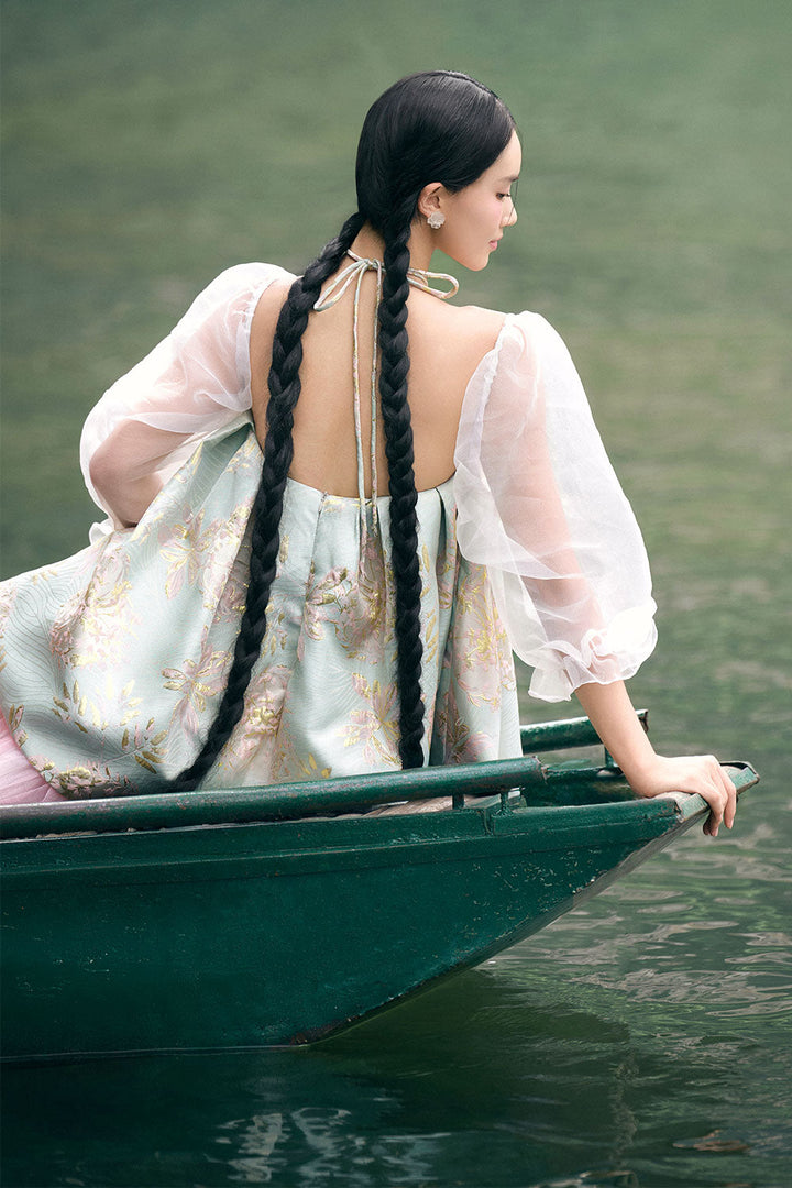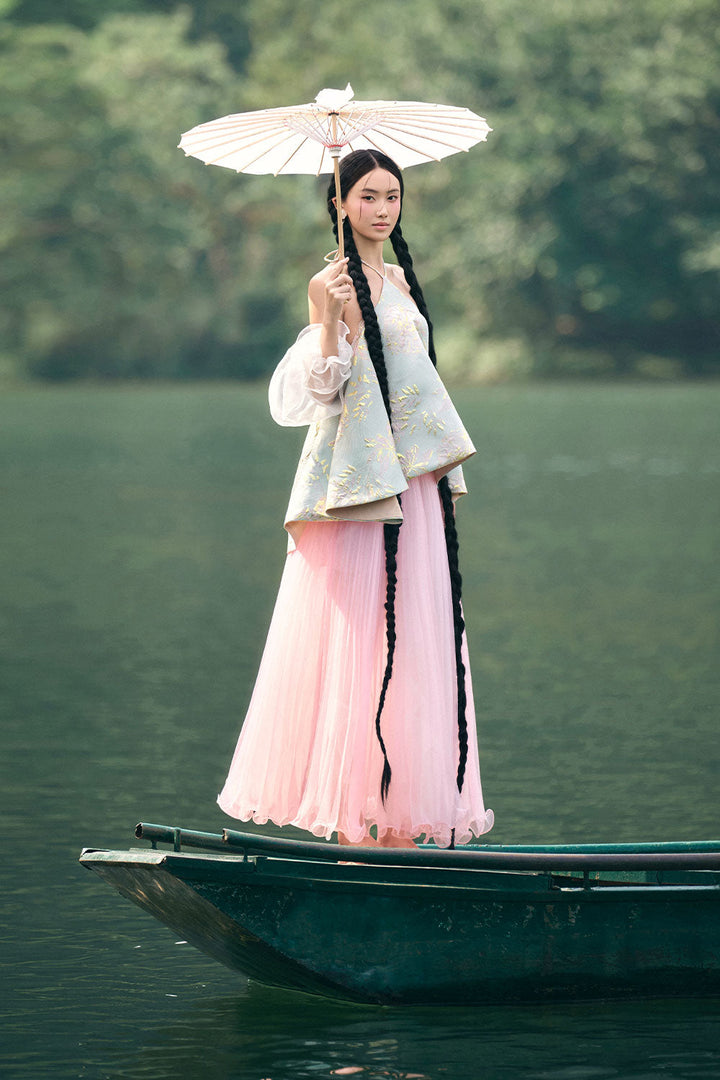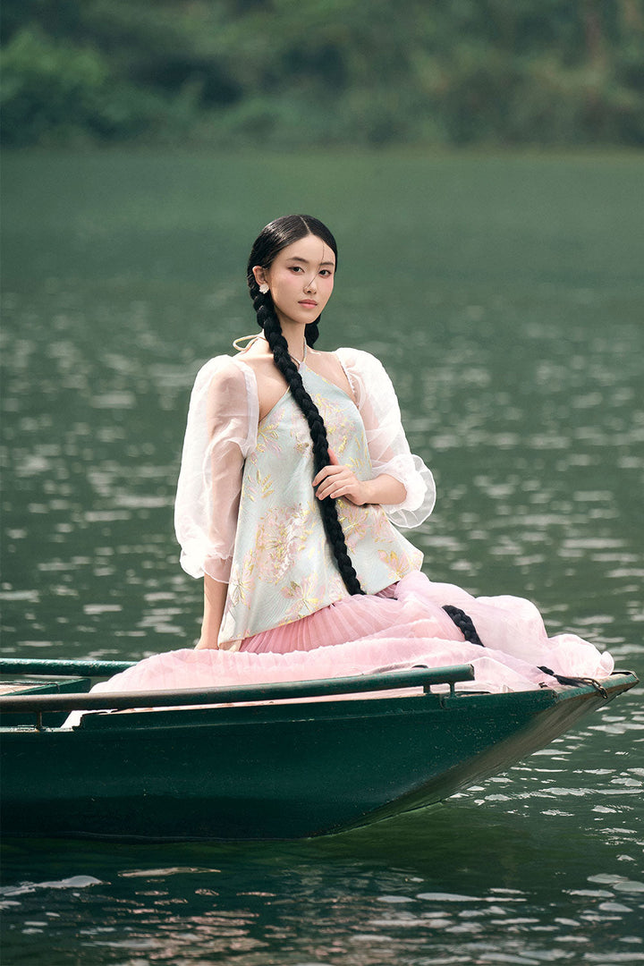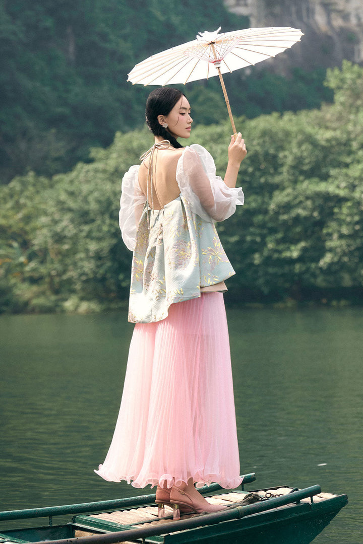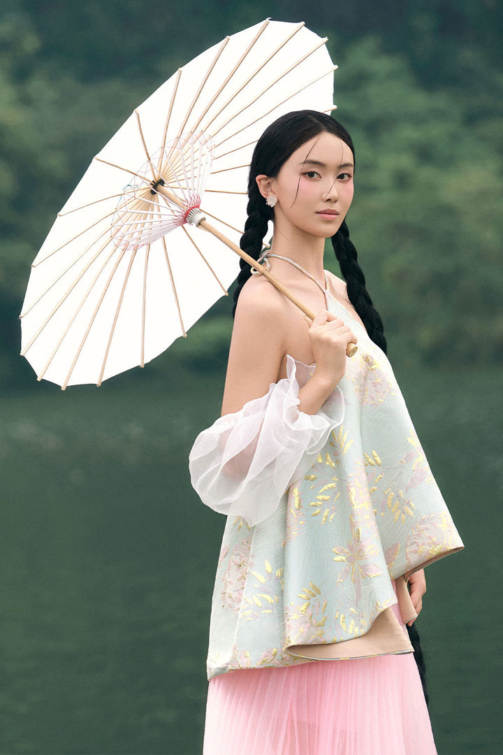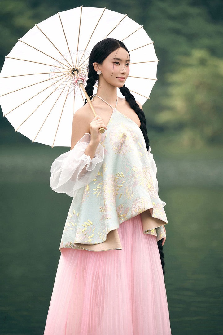 Hoa Dung Asymmetric Halter Neck Brocade Top