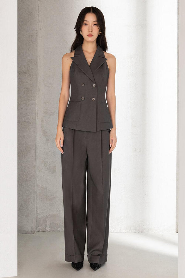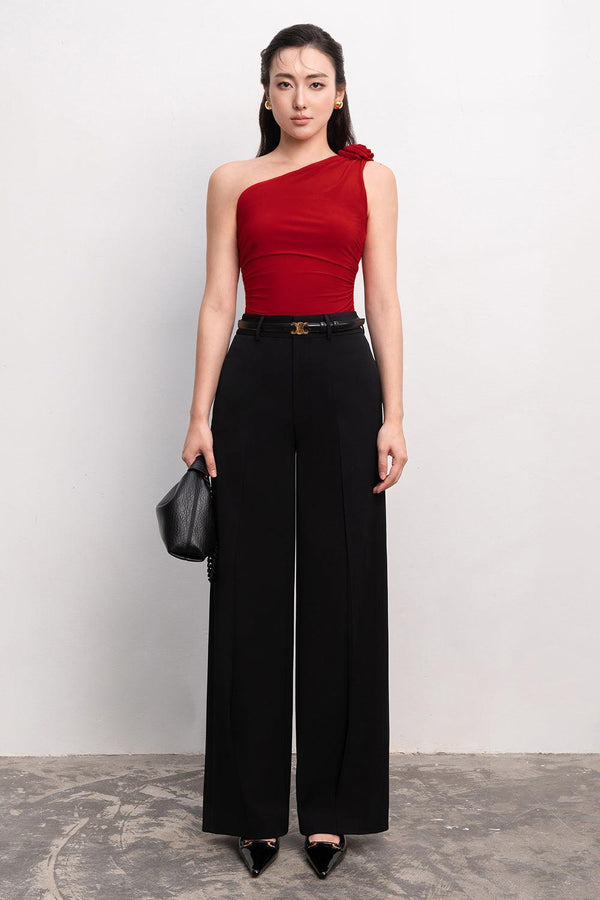 Micah Straight Wide Leg Crepe Ankle Length Pants