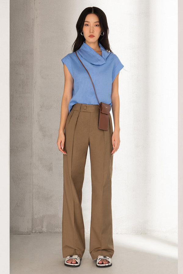 Evie Straight Button Pocket Polycotton Floor Length Trousers