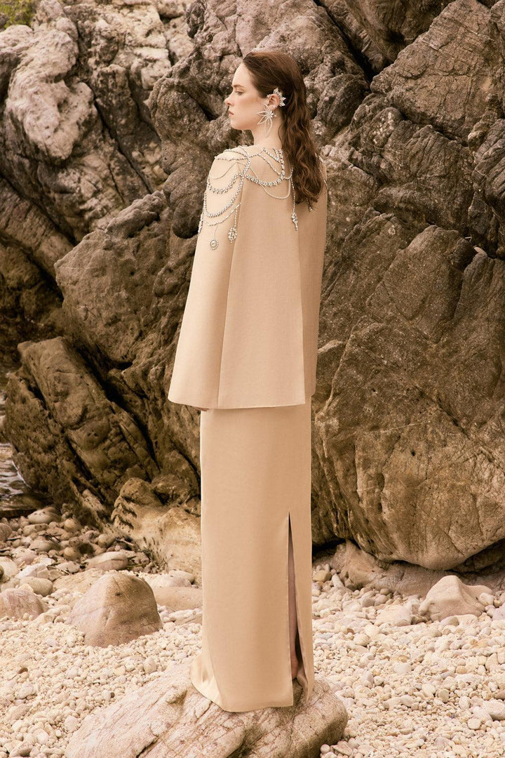 Teresa Straight Back Slit Silk Satin Floor Length Dress