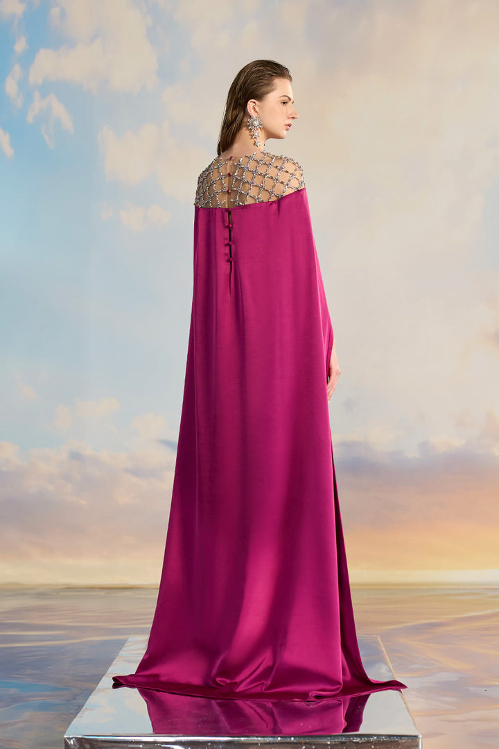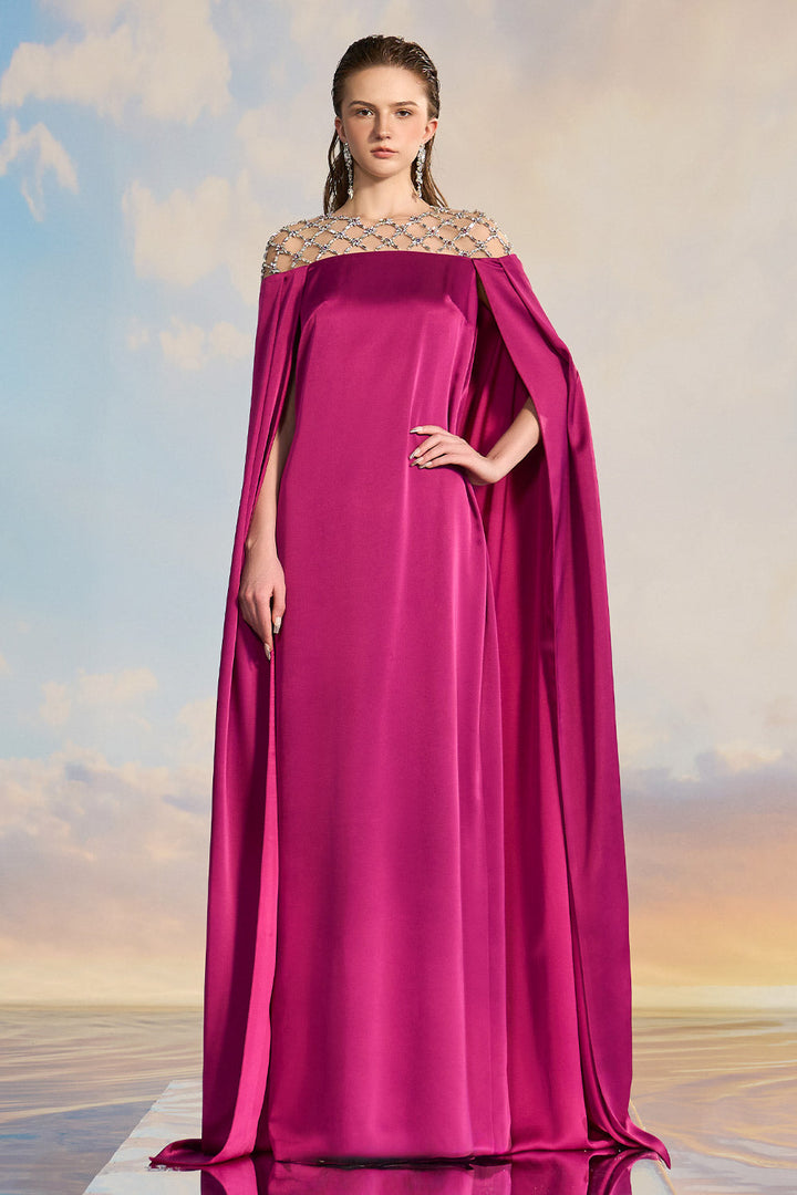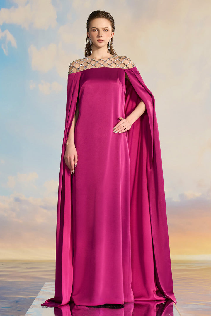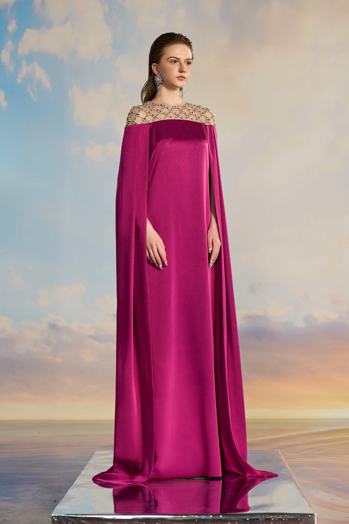 Meliora Straight Illusion Neck Silk Satin Floor Length Dress