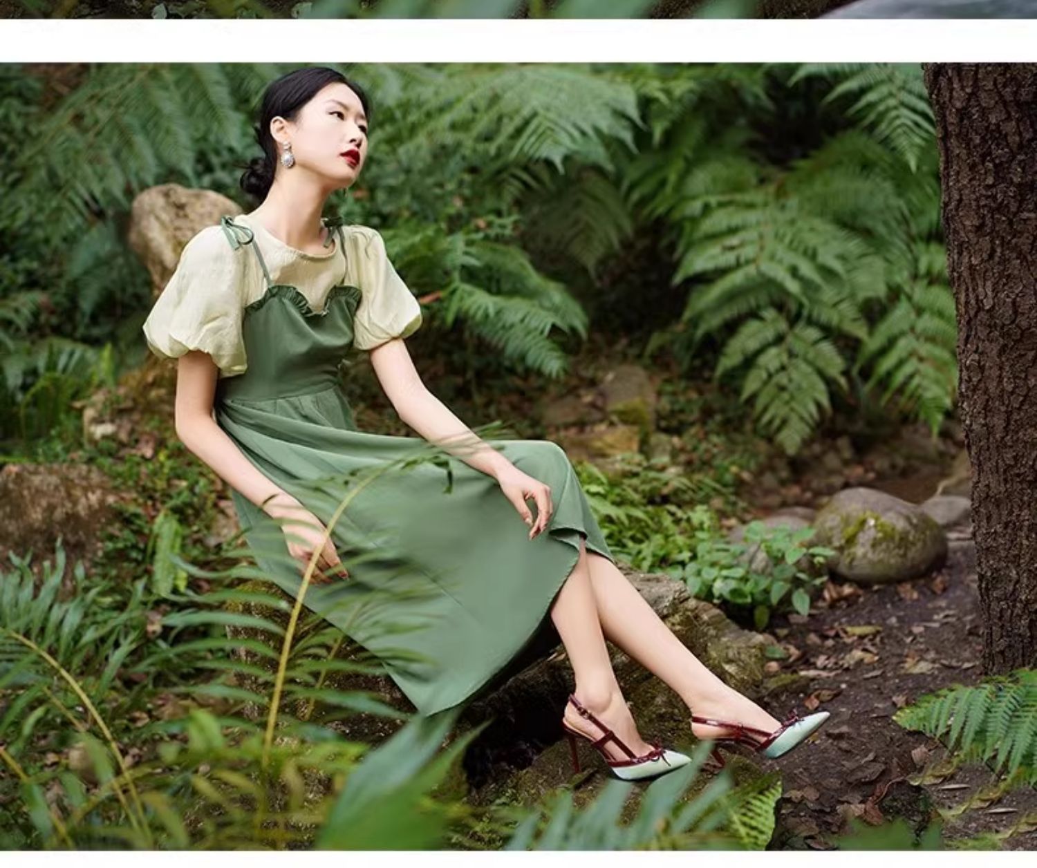 Lily Wei [Peninsula Love Letter] The same green high-end sandals on the show 3cm high heels large size 41-43