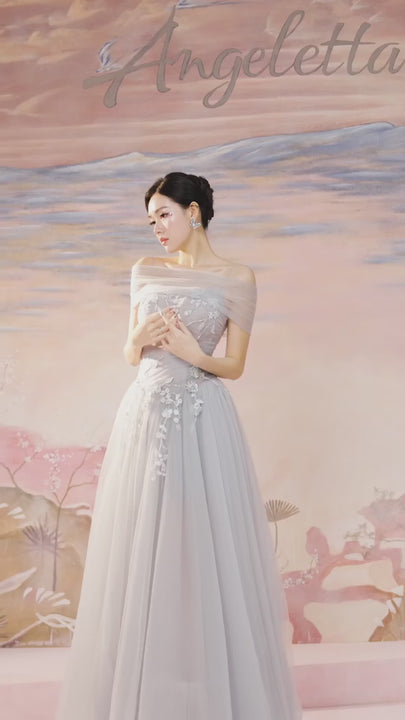 Daniel Fit and Flare Cold Shoulder Sleeved Mesh Silk Long Length Dress Gown Dress Angeletta