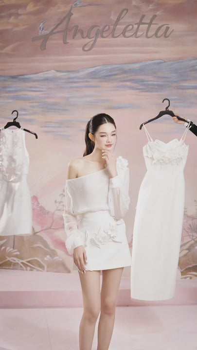 | Special Features | Attached 3D floral on the top, See-through top with mesh material, Reverted flap at waist, Attached rhinestone on the front skirt, Dart line |