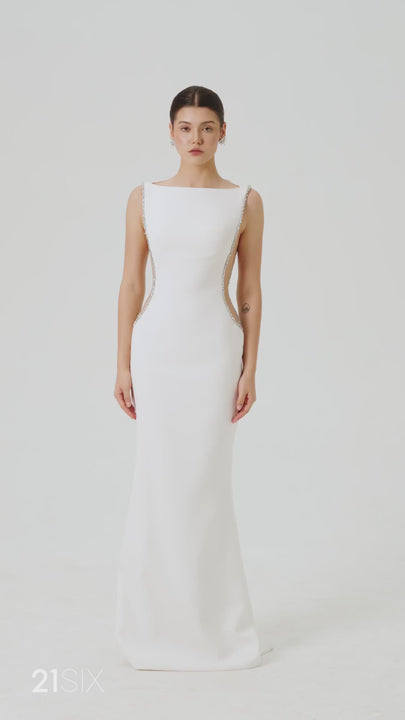 Fatima Hourglass Boat Neck Crepe Floor Length Dress