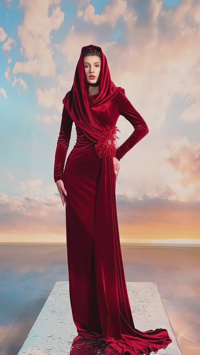 Jazzie Sheath Hooded Neck Velvet Floor Length Dress