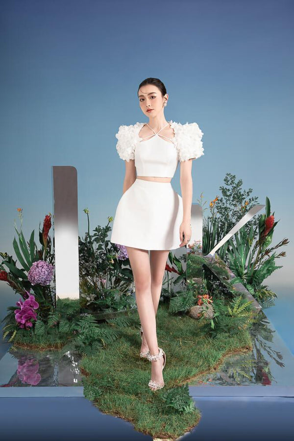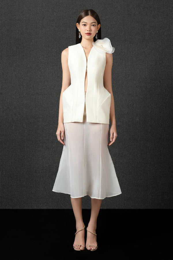 Selena Straight Flower Applique Jacquard Ankle Length Skirt