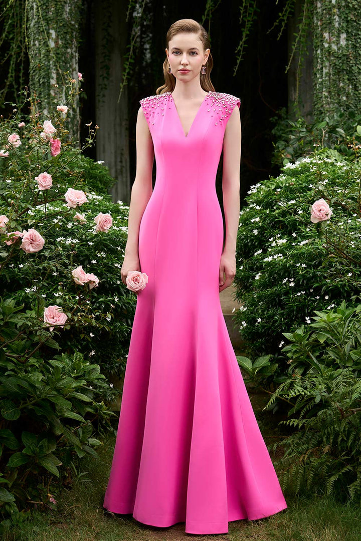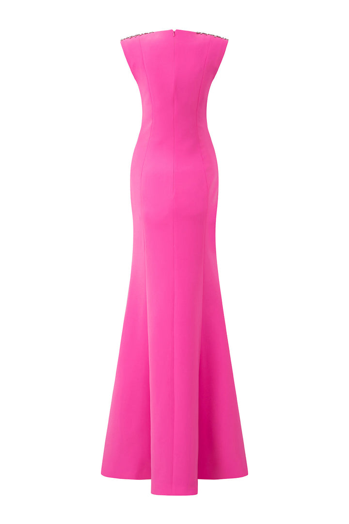 Crafted with a trumpet sleeveless design. this dress offers a sleek and sophisticated look for any occasion. Made with high-quality crepe fabric. it provides a comfortable and elegant fit. Perfect for adding a touch of glamour to any event.