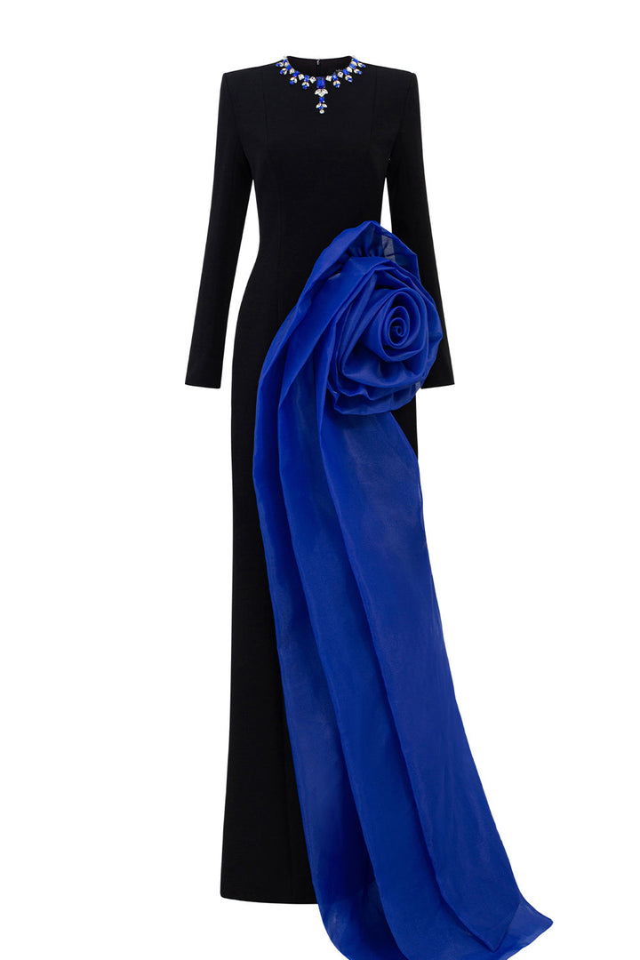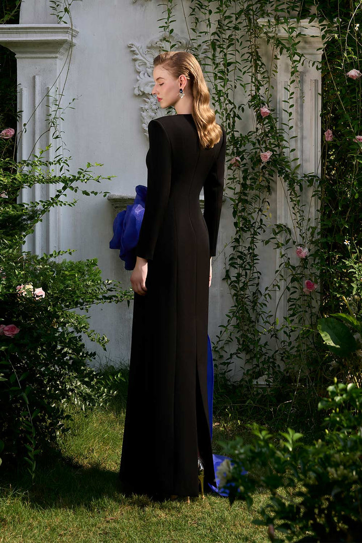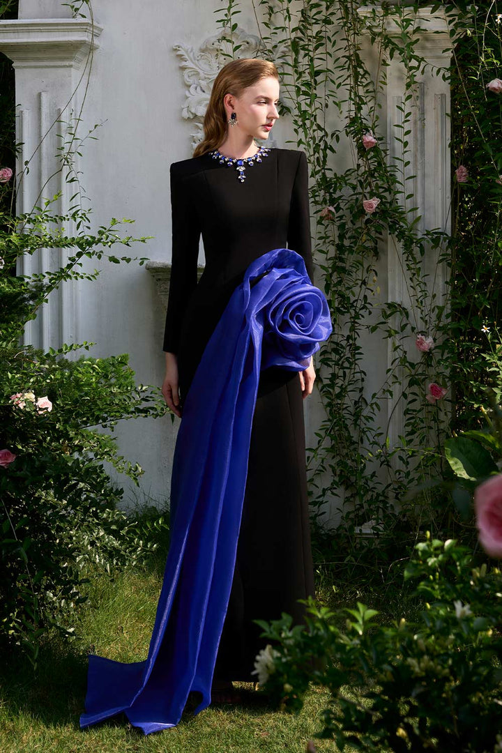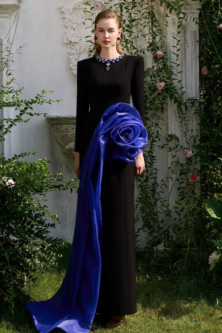 Azalea Sheath Floral Organza Crepe Floor Length Dress Black Blue Gown Dress I.H.F Atelier