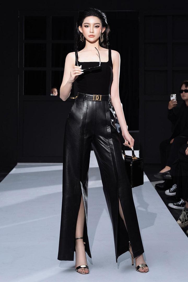 Crafted with supple leather. these pants take your style to the next level. Featuring a stylish straight-cut silhouette and hems slit to perfection. get ready to make a statement with these pants. Be unforgettable.
