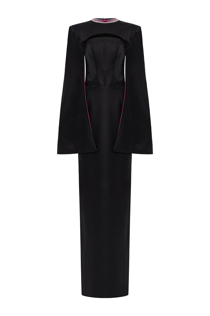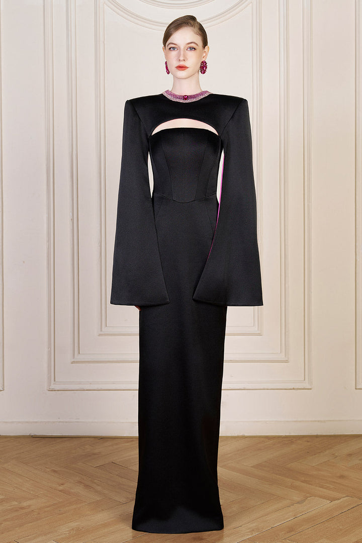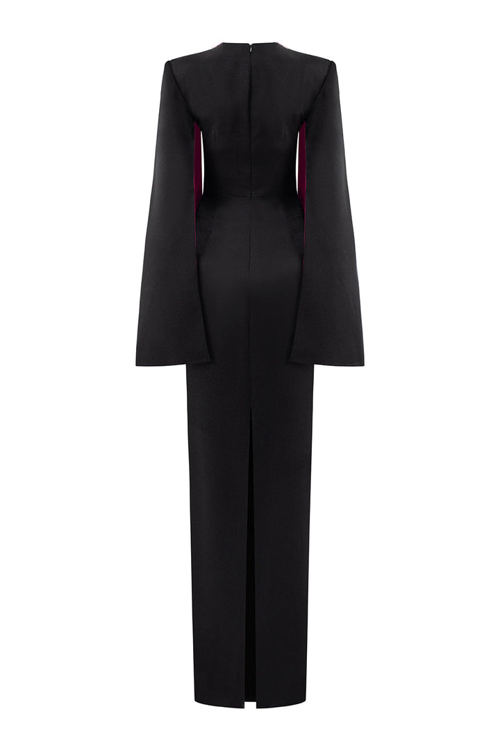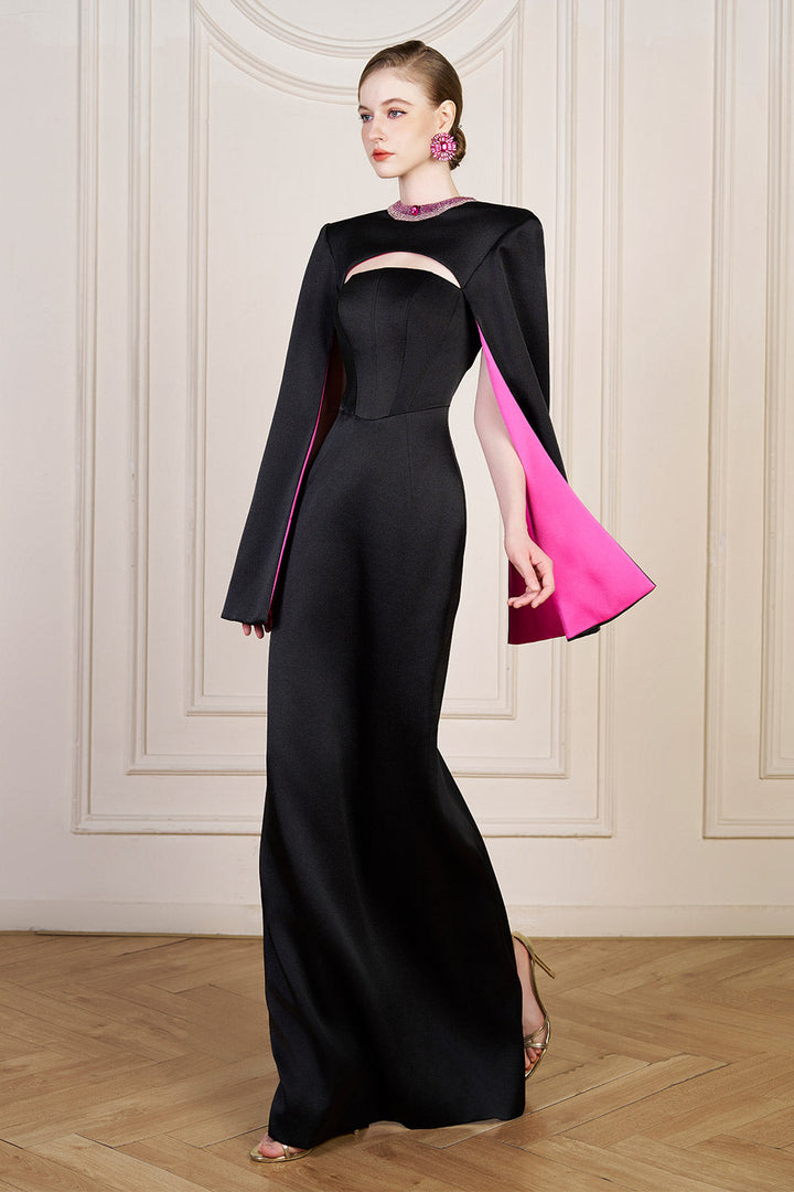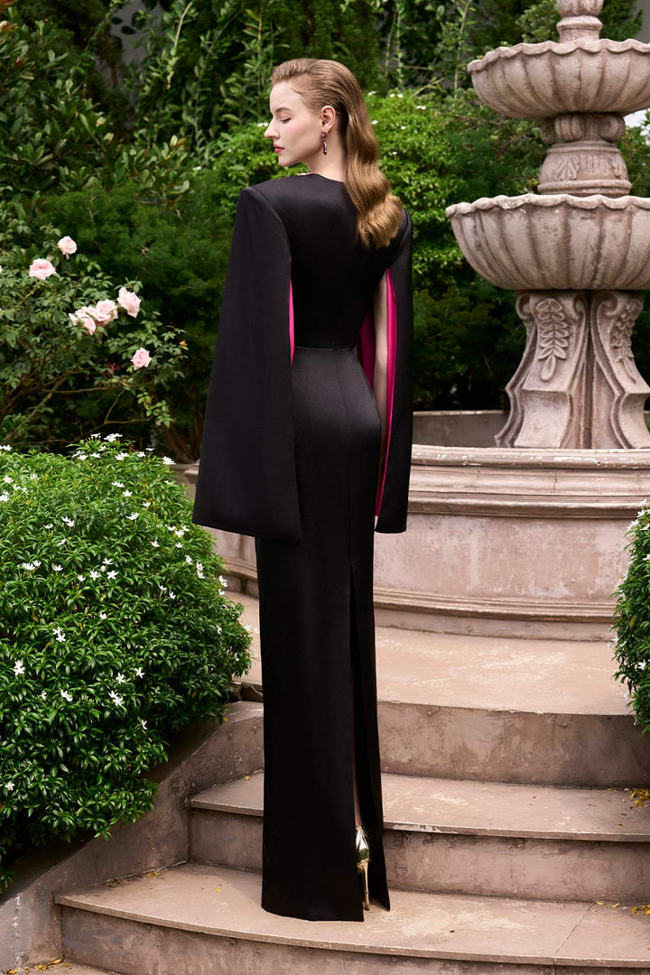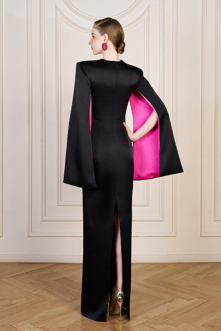 Bristol Sheath Square Shoulder Silk Floor Length Dress Fuchsia Black Gown Dress I.H.F Atelier