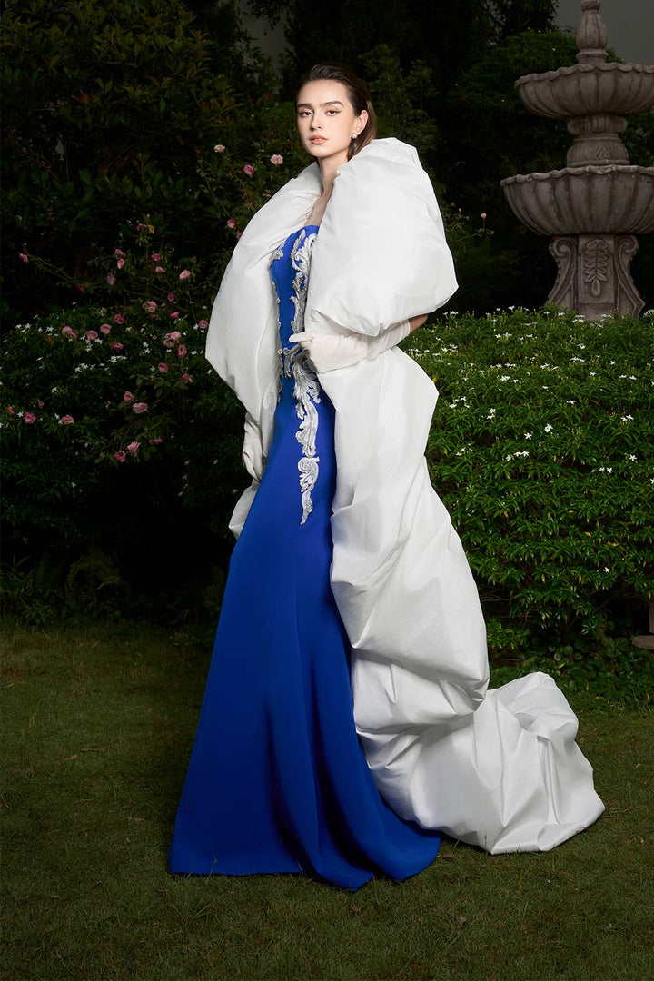 Elevate your evening wear with our cape. Designed to highlight your shoulders. its bubble off-shoulder silhouette adds a touch of elegance and charm to any look. Made with floor-length taffeta. it provides a comfortable and flattering fit for any occasion.
