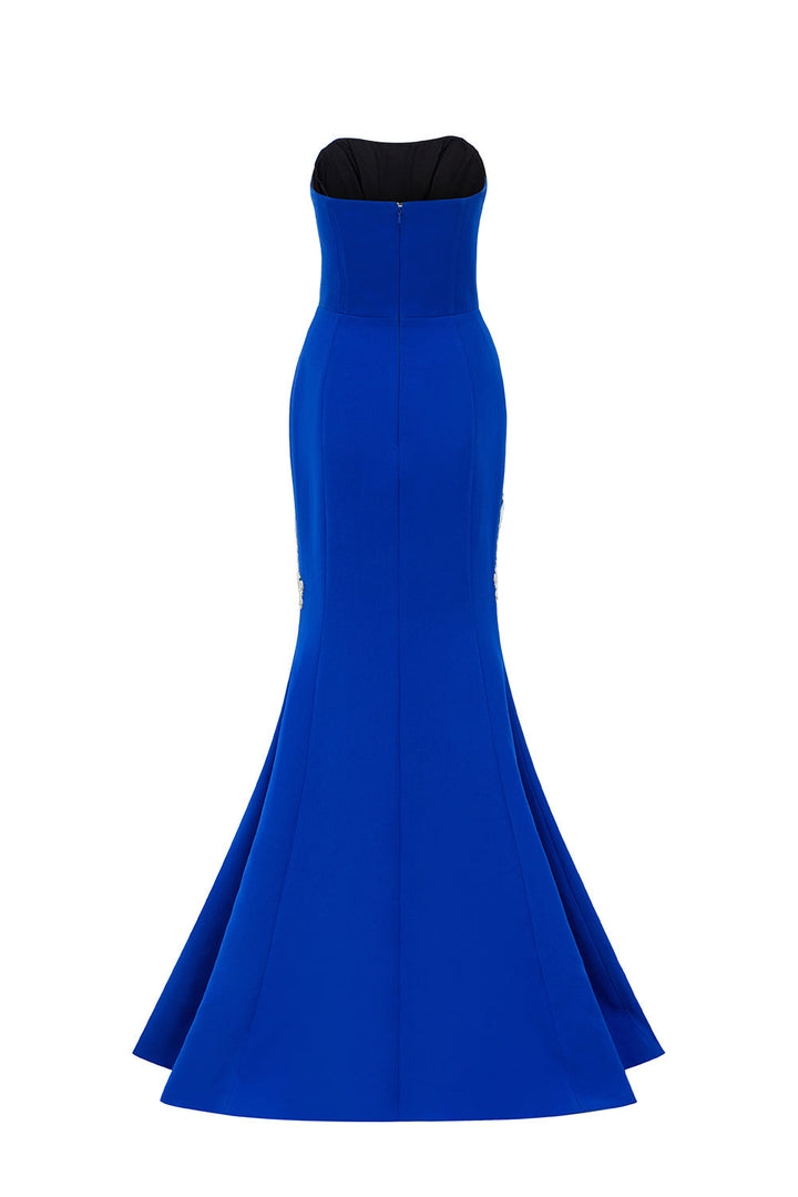This dress is a timeless piece that exudes elegance and sophistication. The mermaid straight across neck silhouette flatters all body types. making it a must-have for any formal occasion. Its high-quality crepe fabric drapes beautifully and ensures a comfortable fit. Elevate your style with this stunning dress.