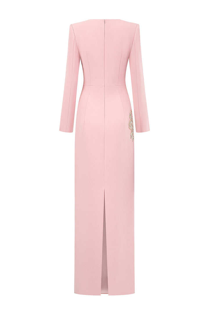 Expertly designed with a sheath silhouette and Queen Anne neck. the dress is a timeless addition to your wardrobe. Crafted from high-quality crepe fabric. this floor-length dress offers both elegance and comfort. Perfect for any formal occasion. this dress is sure to make a statement.