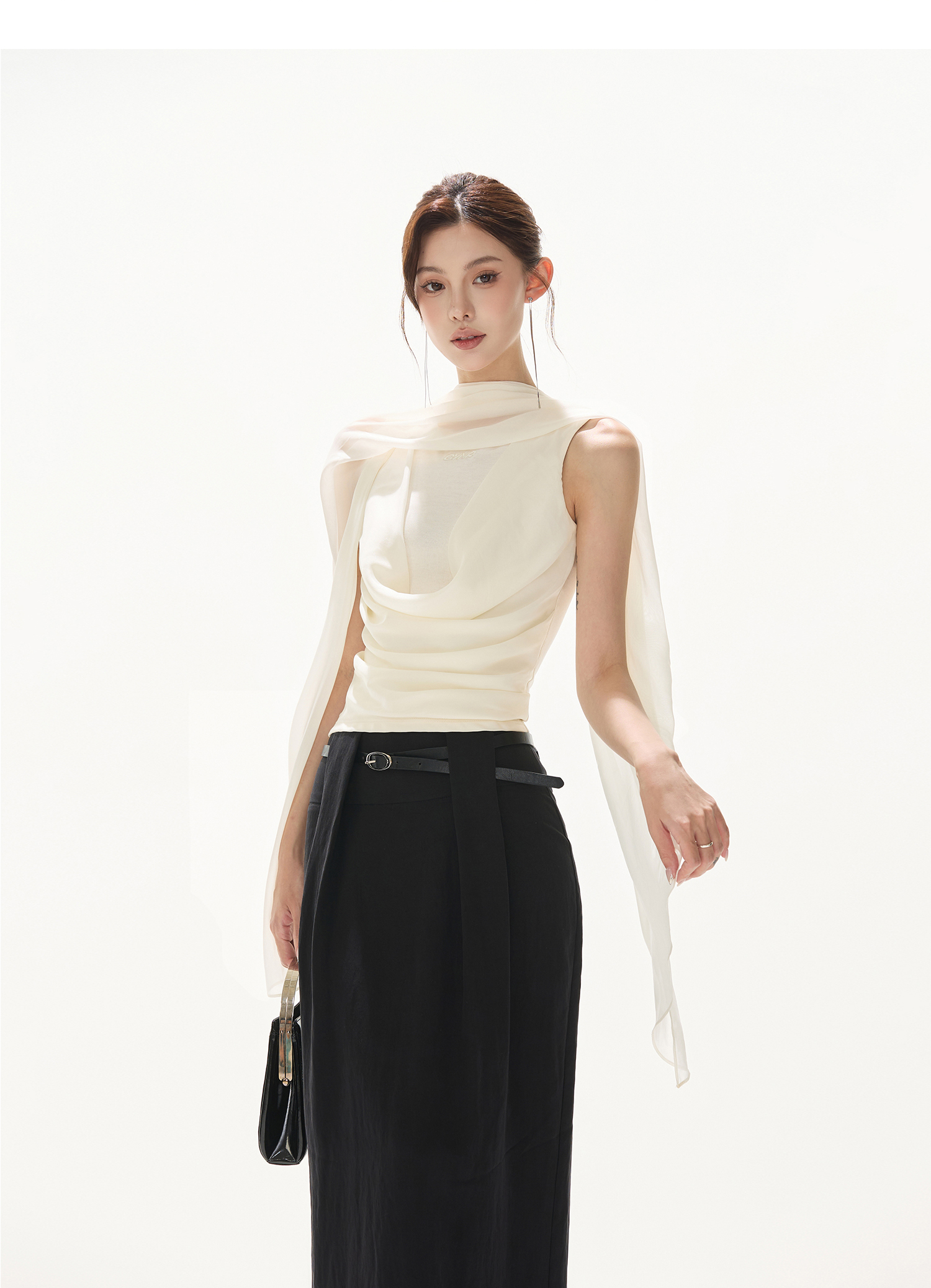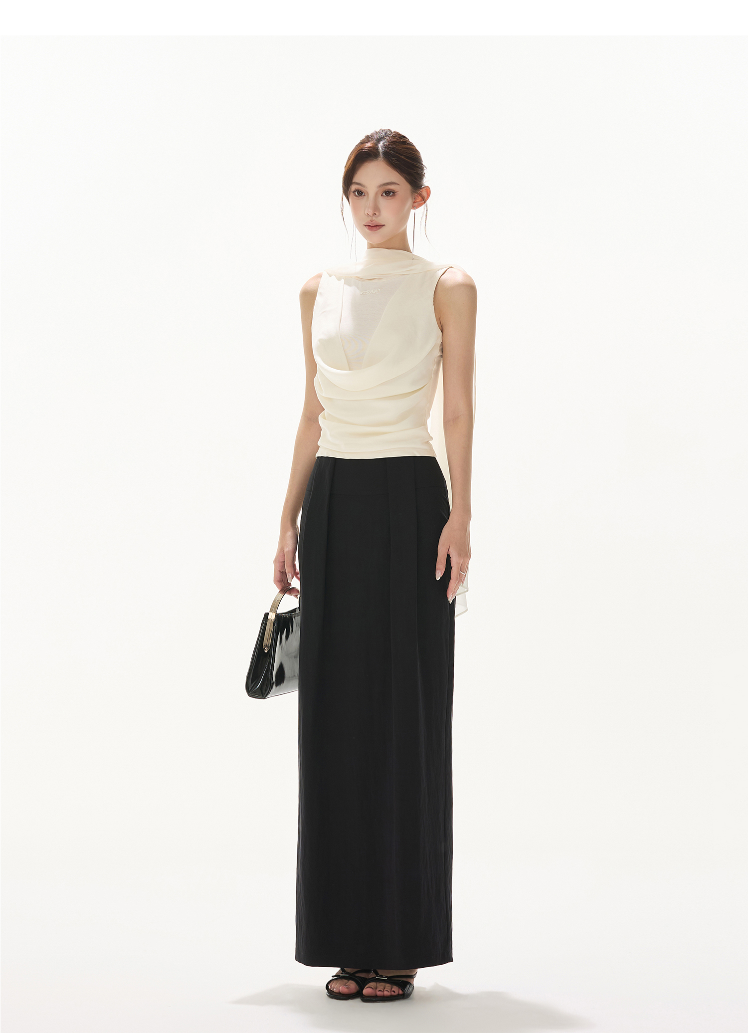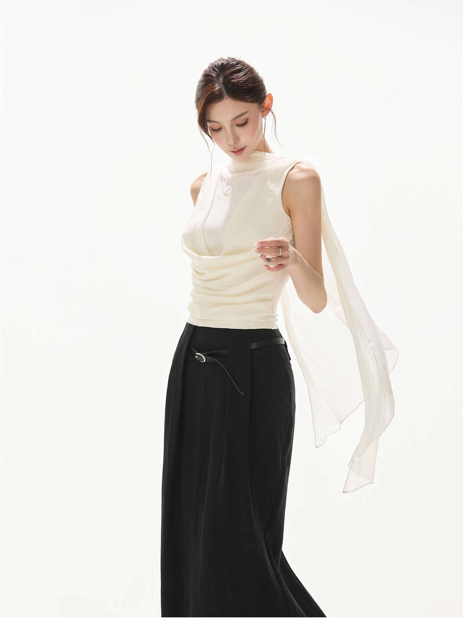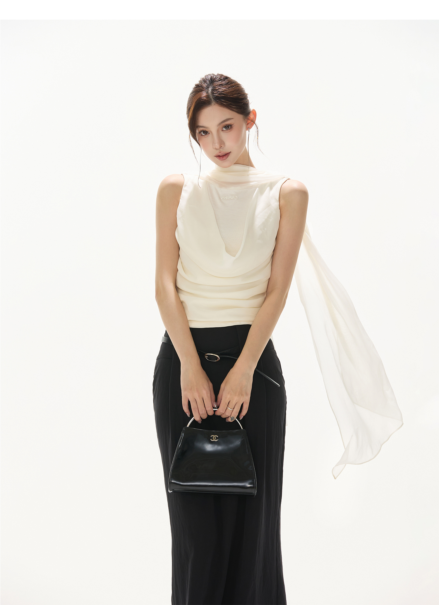Women's Draped Cowl Neck Sleeveless Chiffon Blouse - Elegant Ivory Top