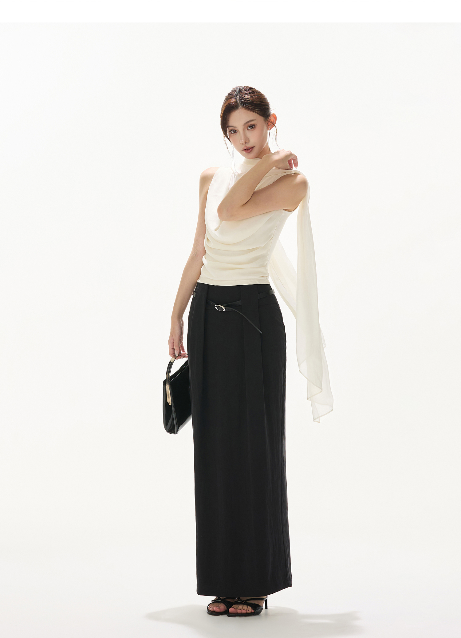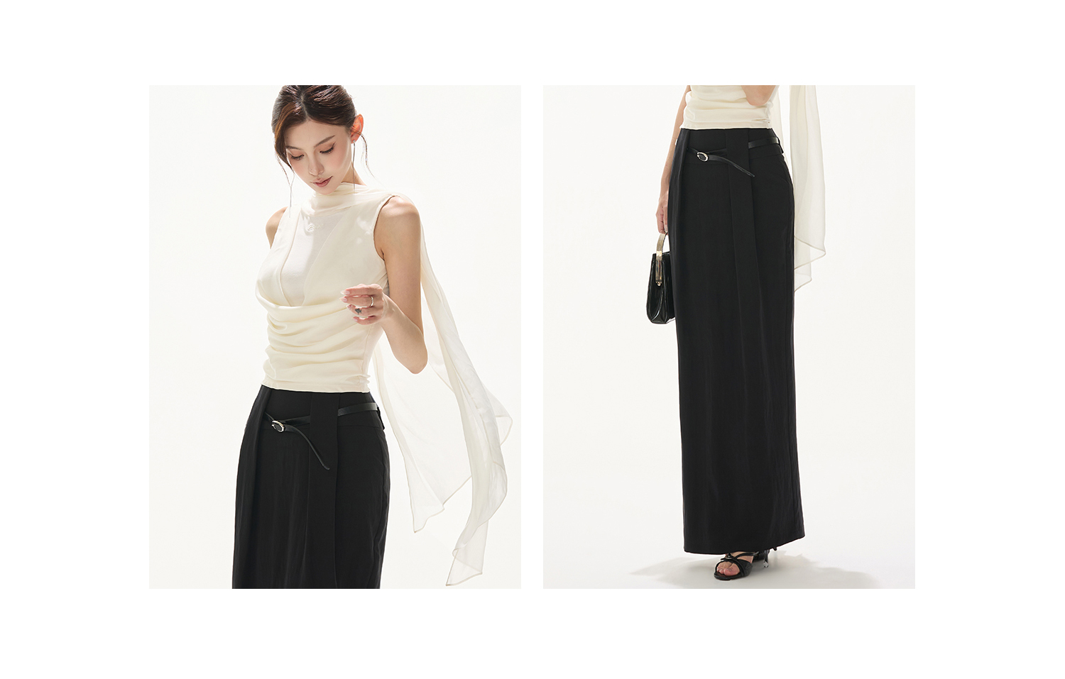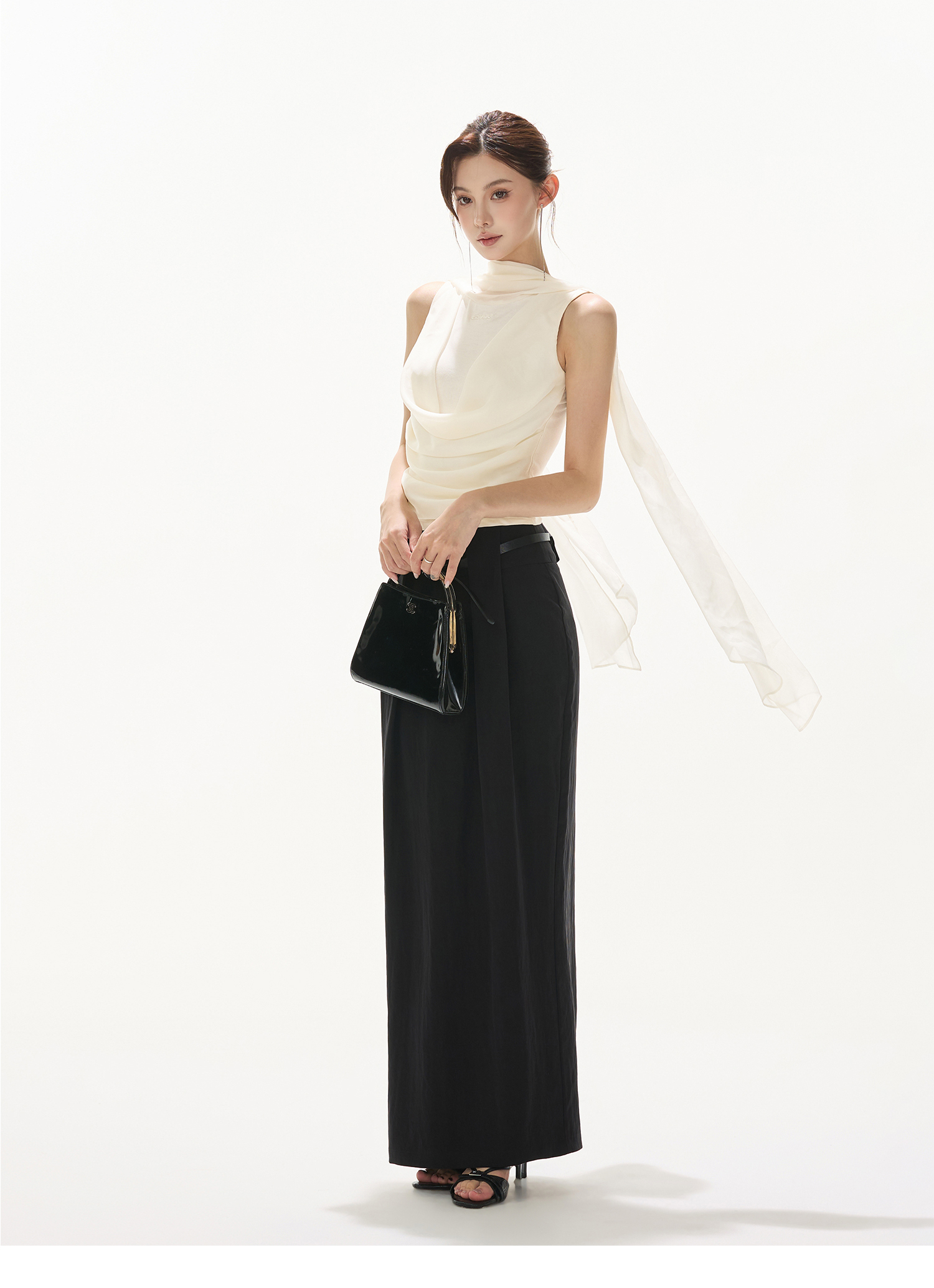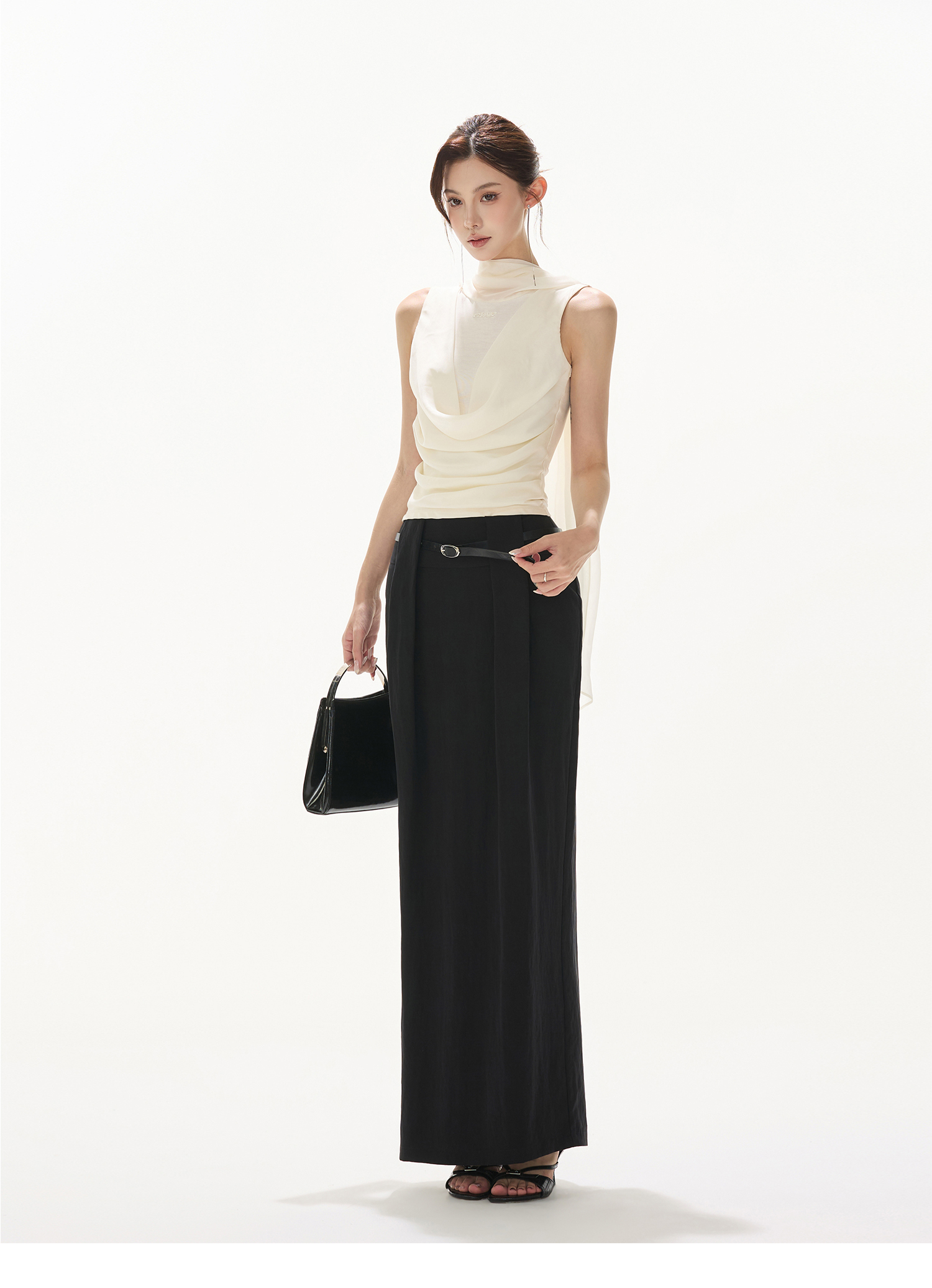 Women's Draped Cowl Neck Sleeveless Chiffon Blouse - Elegant Ivory Top