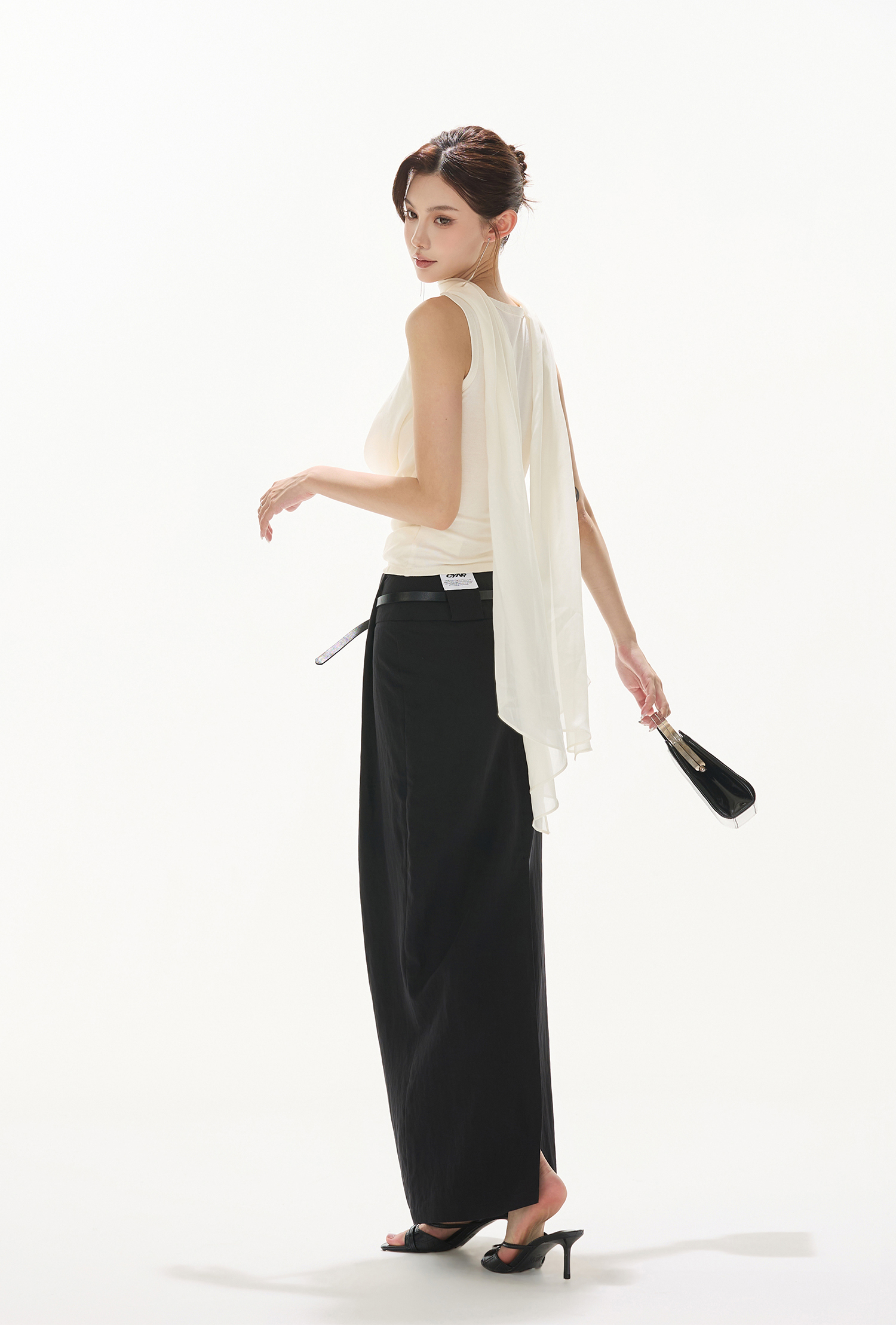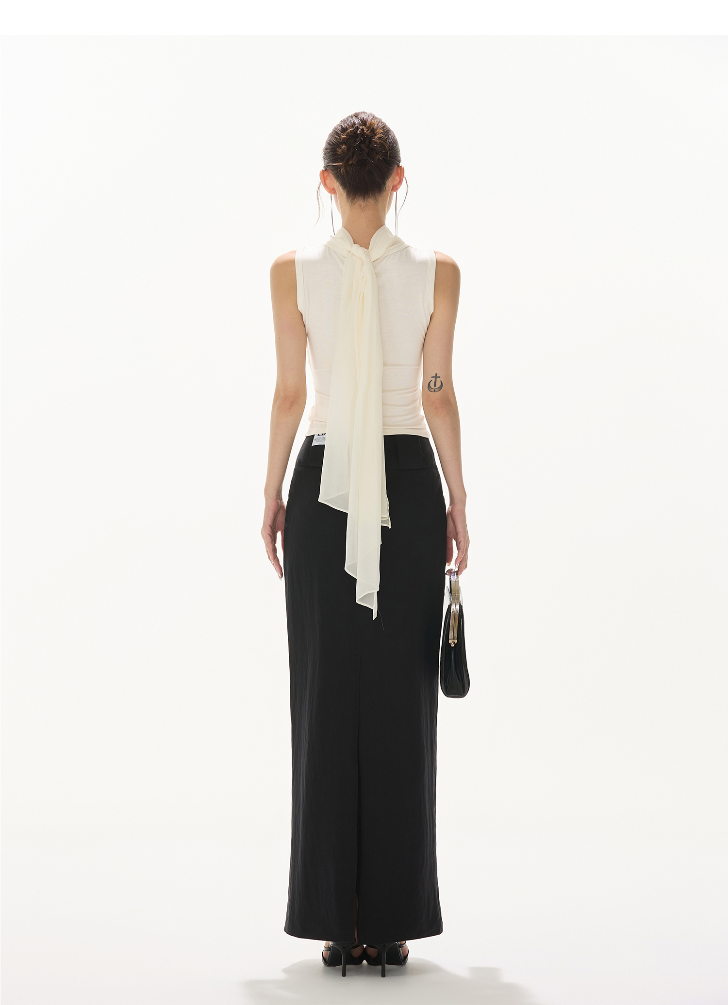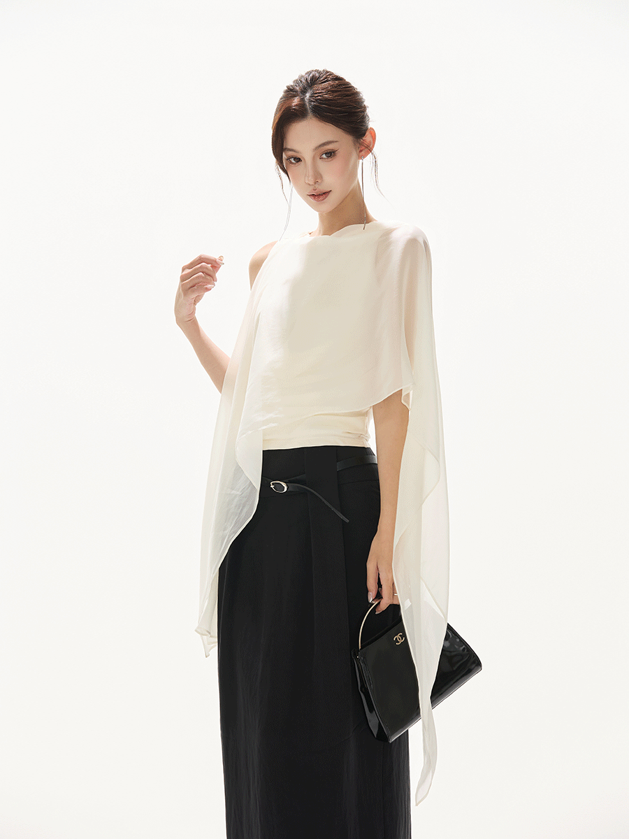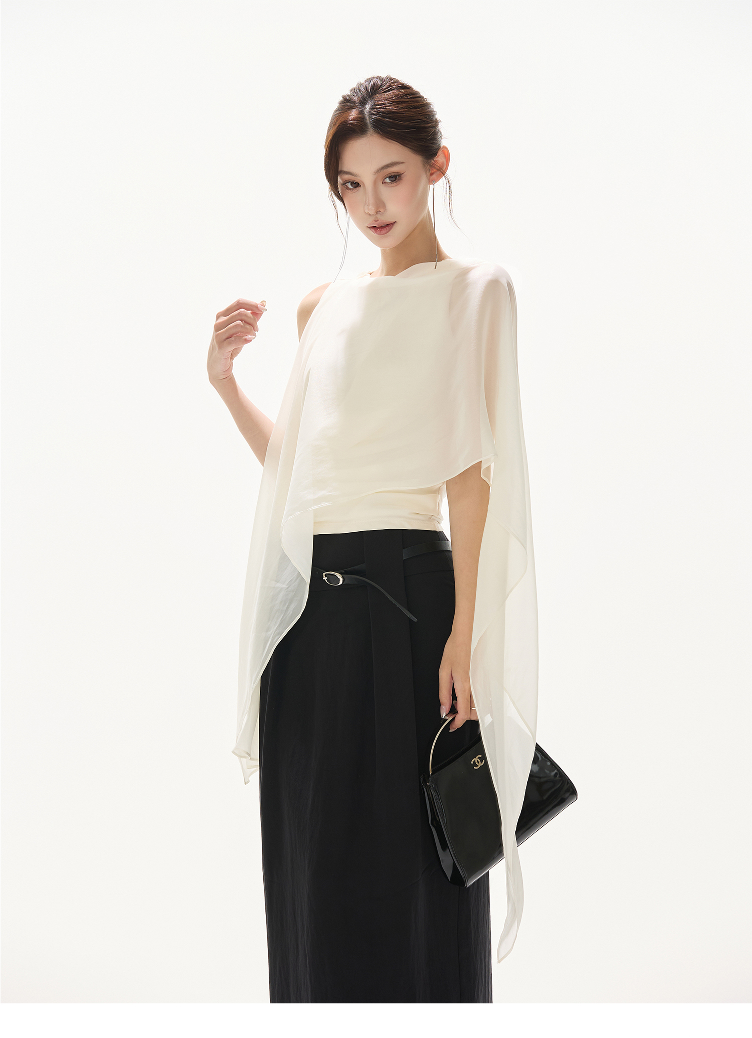 Women's Draped Cowl Neck Sleeveless Chiffon Blouse - Elegant Ivory Top
