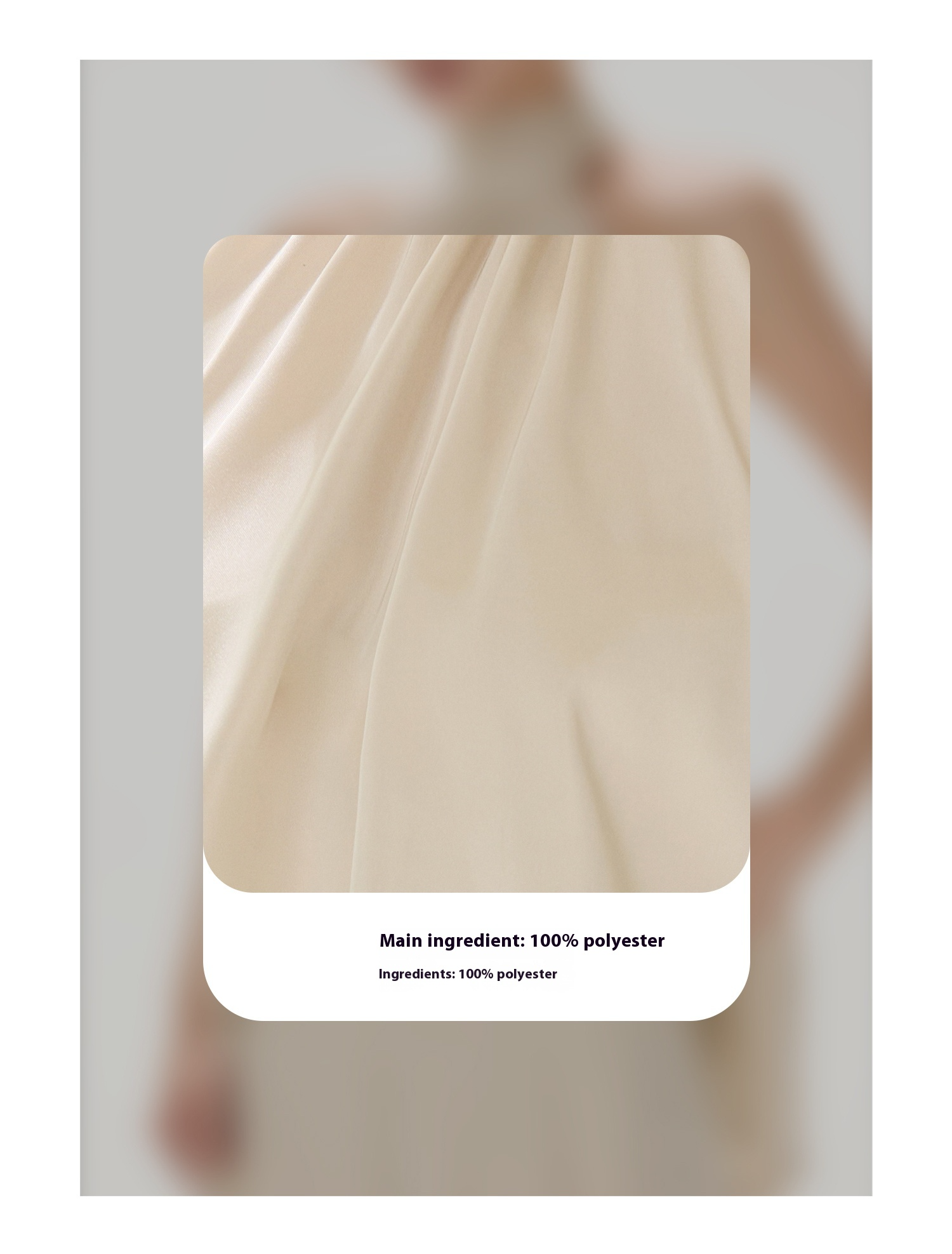 Elegant Draped Halter Neck Top - Champagne Satin Sleeveless Blouse with Tie Back