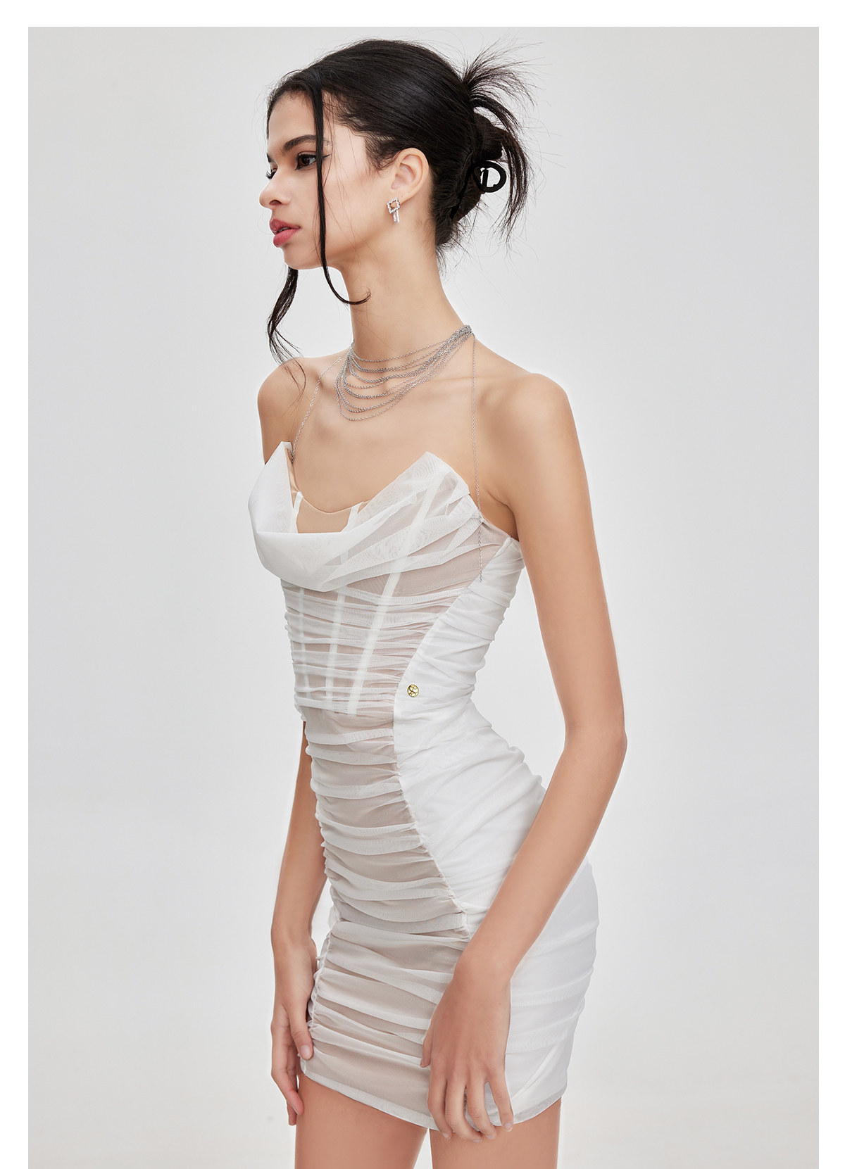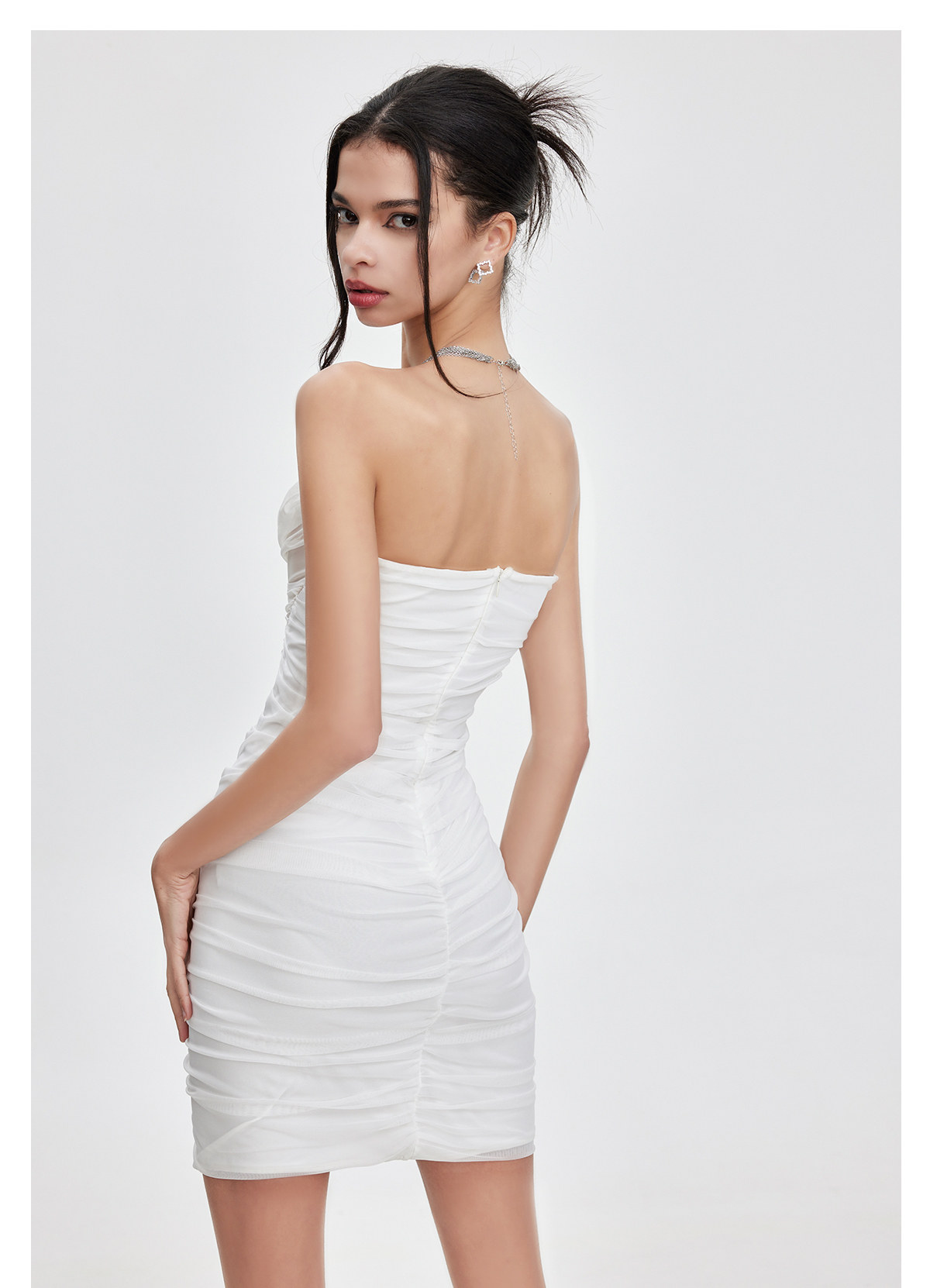 Li Xirui s RESSALINA KALI mesh pleated strapless skirt with French style dress temperament