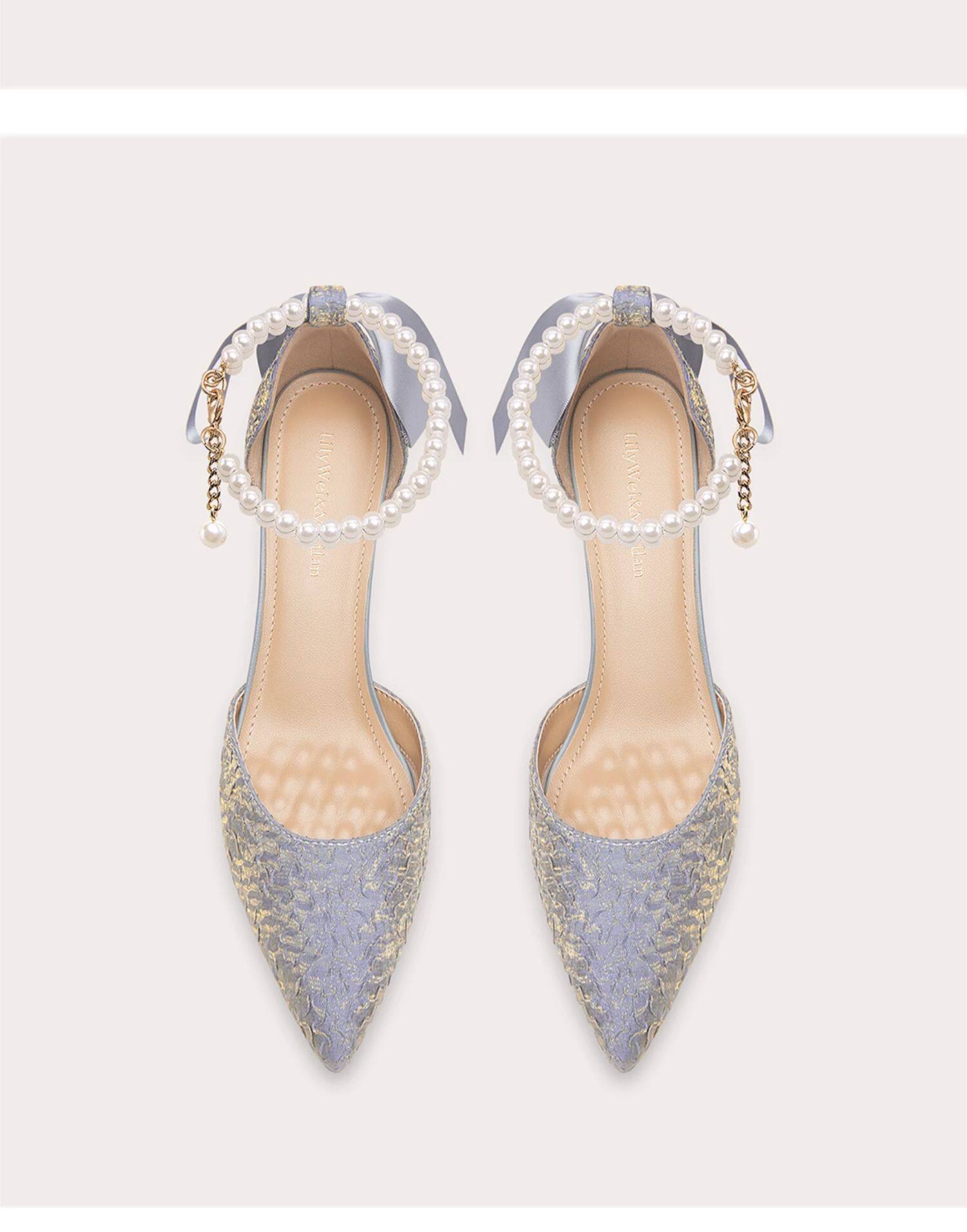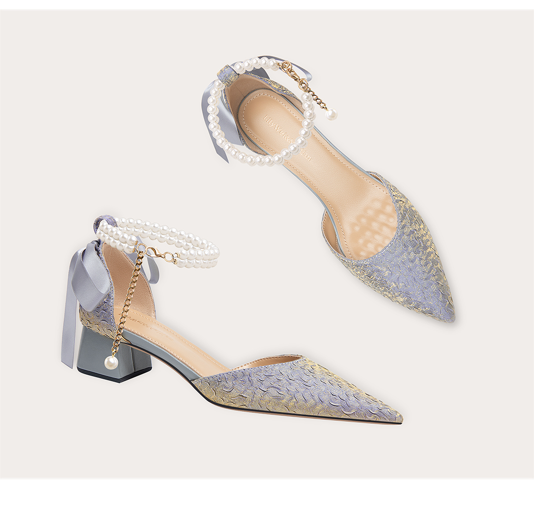 LilyWei Mermaid Dream French Beautiful Folds Not Tired Feet Sandals Temperament Coarse Heel Small Heels Large Size 41-43