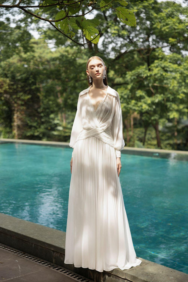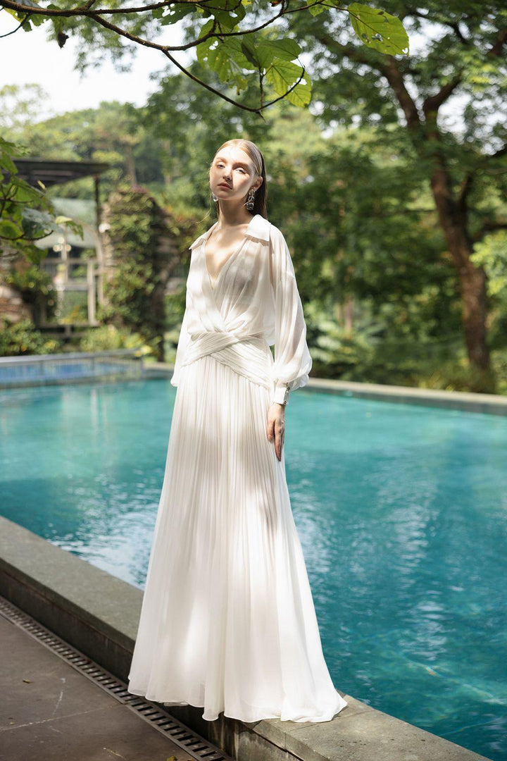 eliminates the need for extensive alterations by crafting your dress based on eight specific measurements: bust, waist, hips, height, dress length, bicep, sleeve length, and bra cup size. While this ensures a near-perfect fit, minor adjustments may still be needed for the best results.