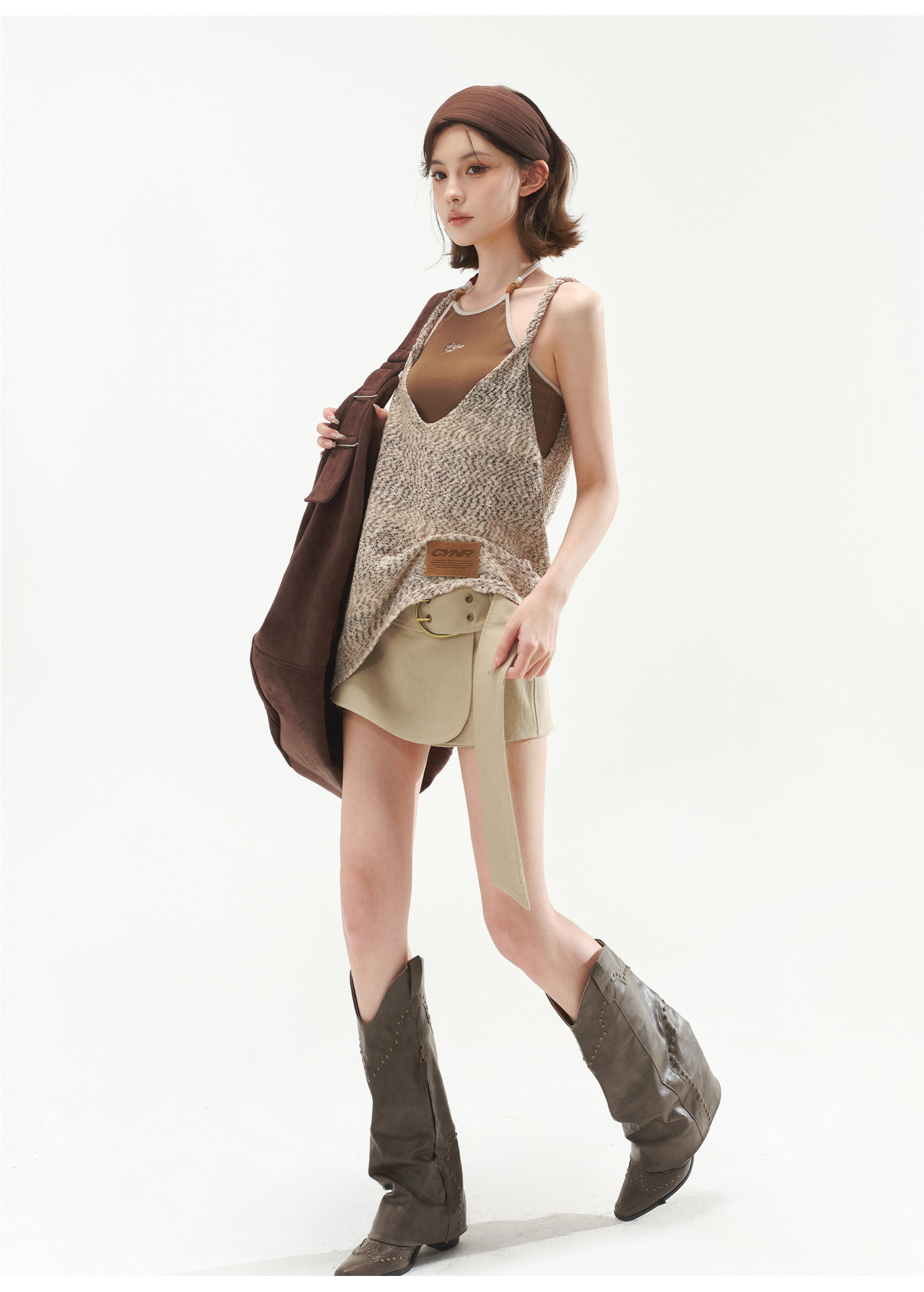 RessaLina Women's Asymmetric Beaded Tank & Kimono Set - Cotton Blend for Casual Retro