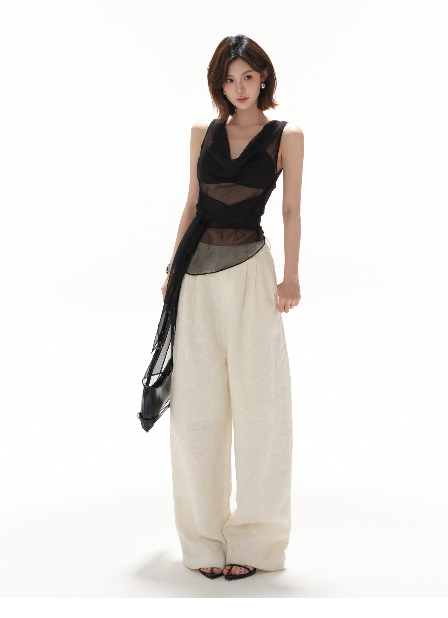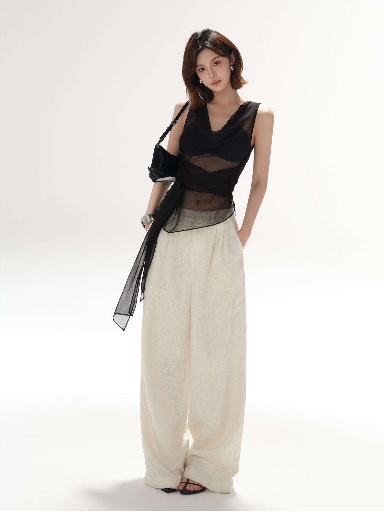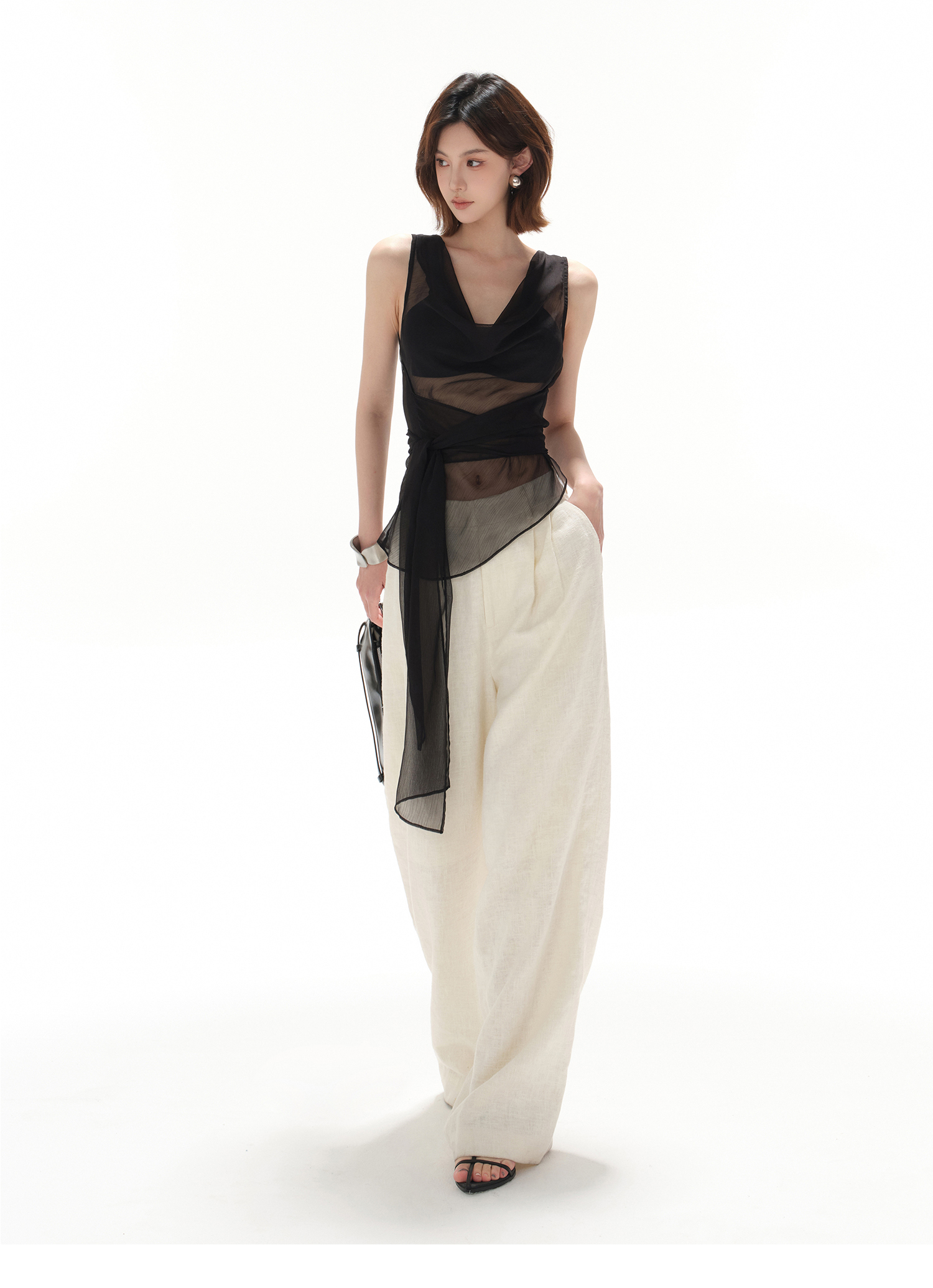 CYNR original design smart office lady swinging collar sexy simple lace-up waist perspective hot girl top
