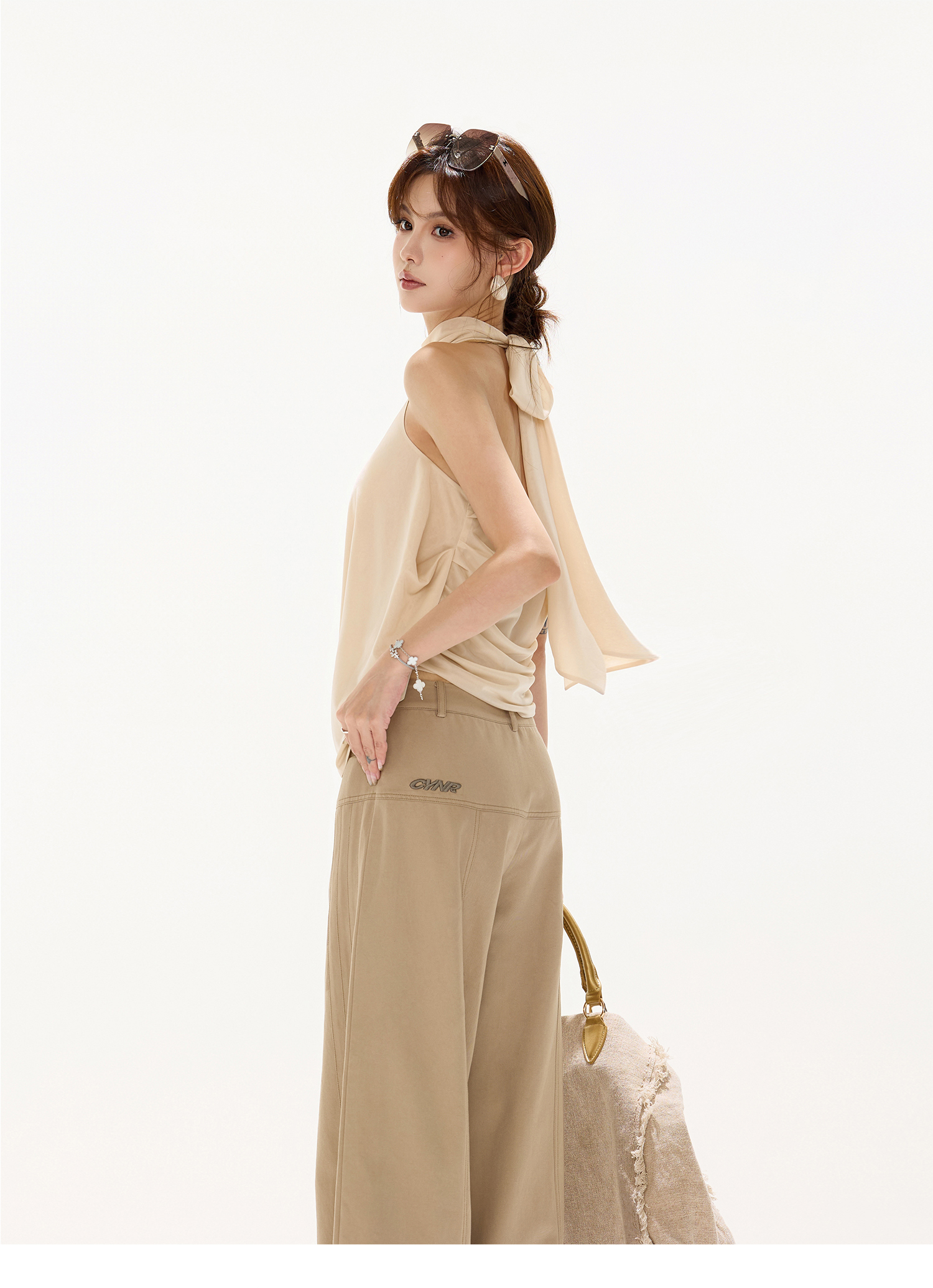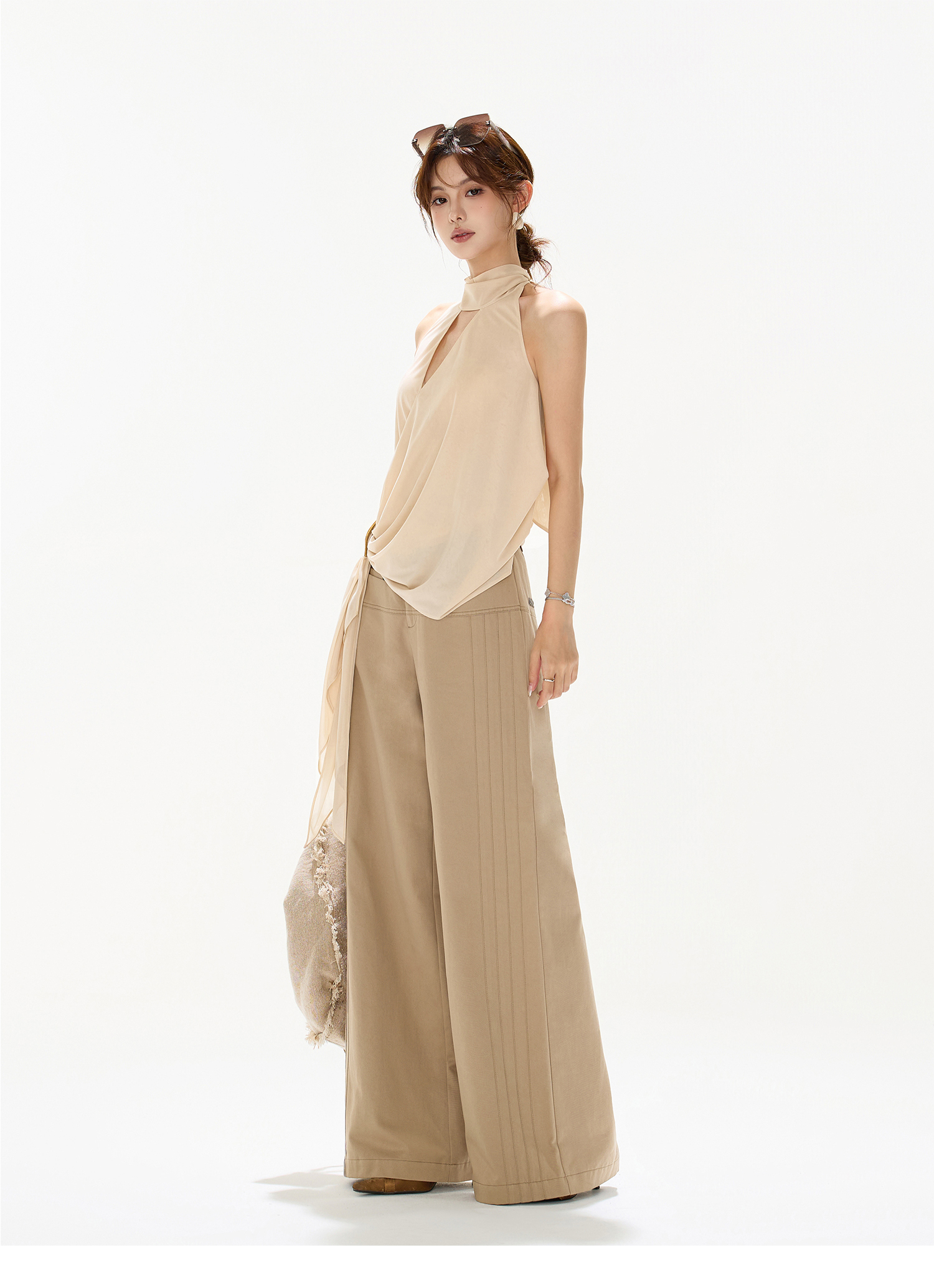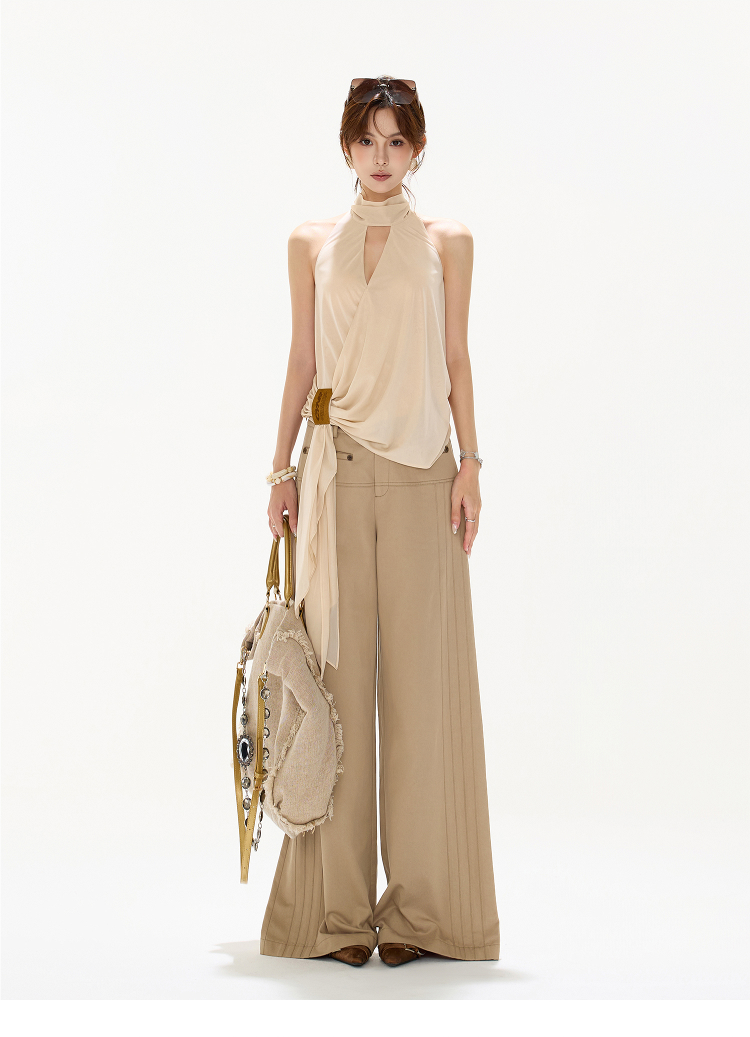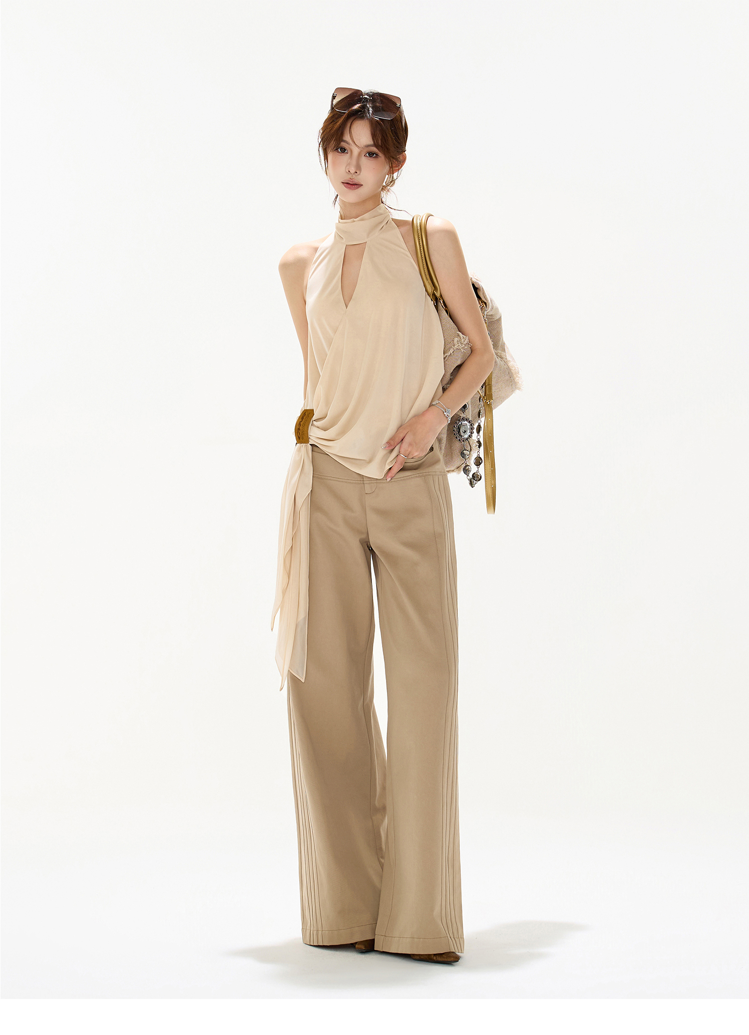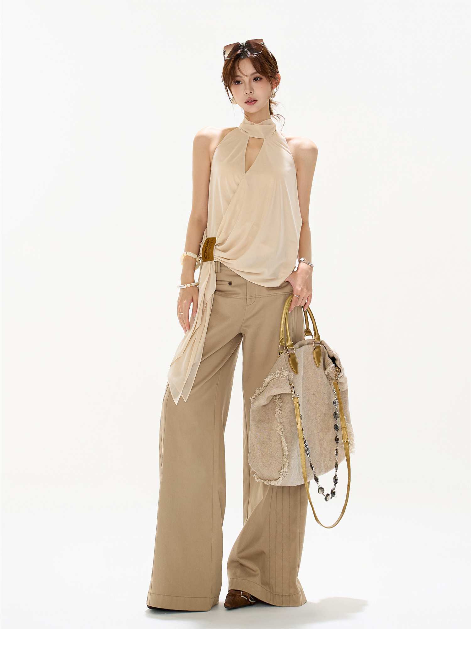 RessaLina Women's Drape Neck Cross Tie Tank - Light Apricot Cropped V-Neck, 100% Polyester