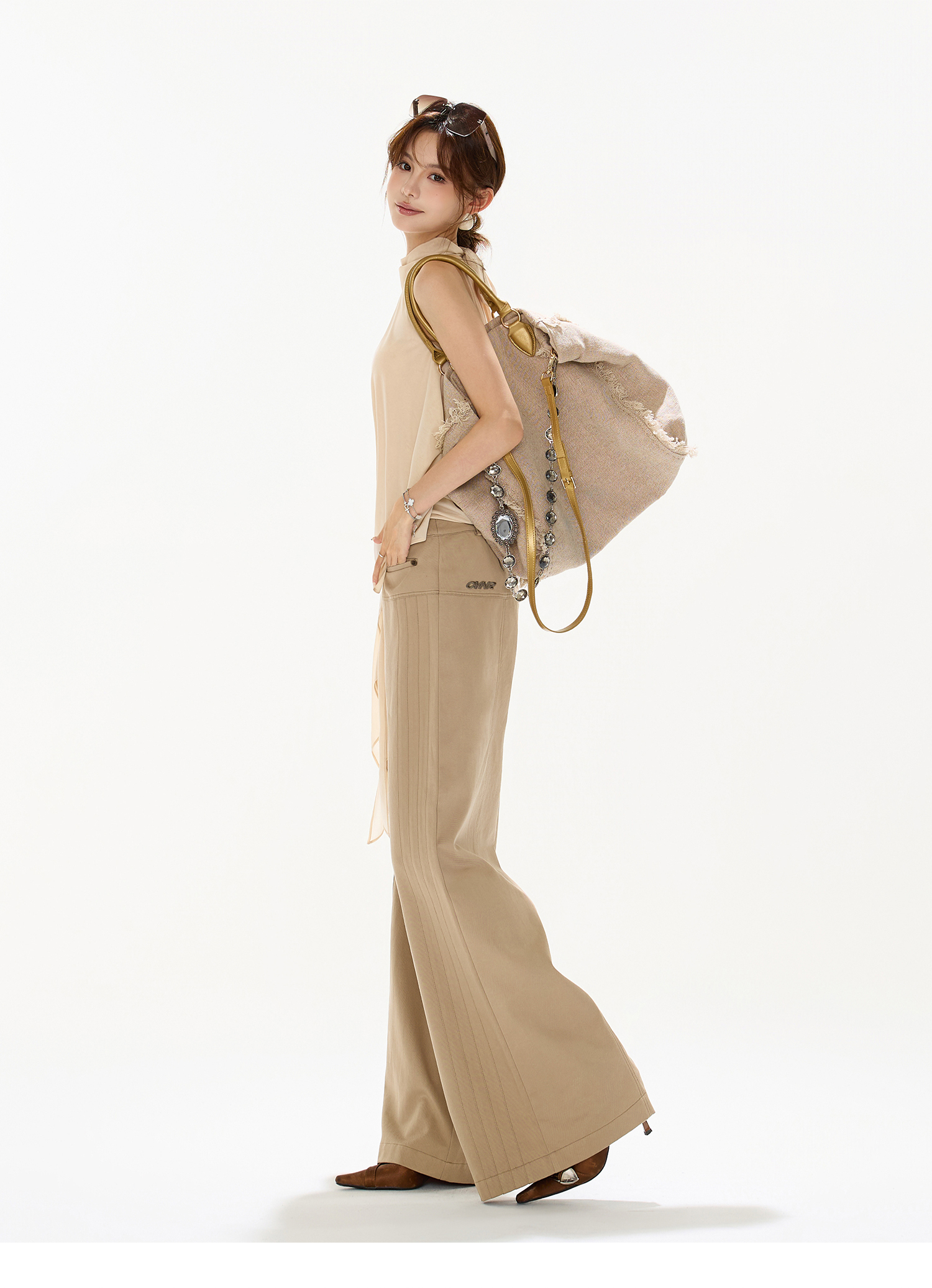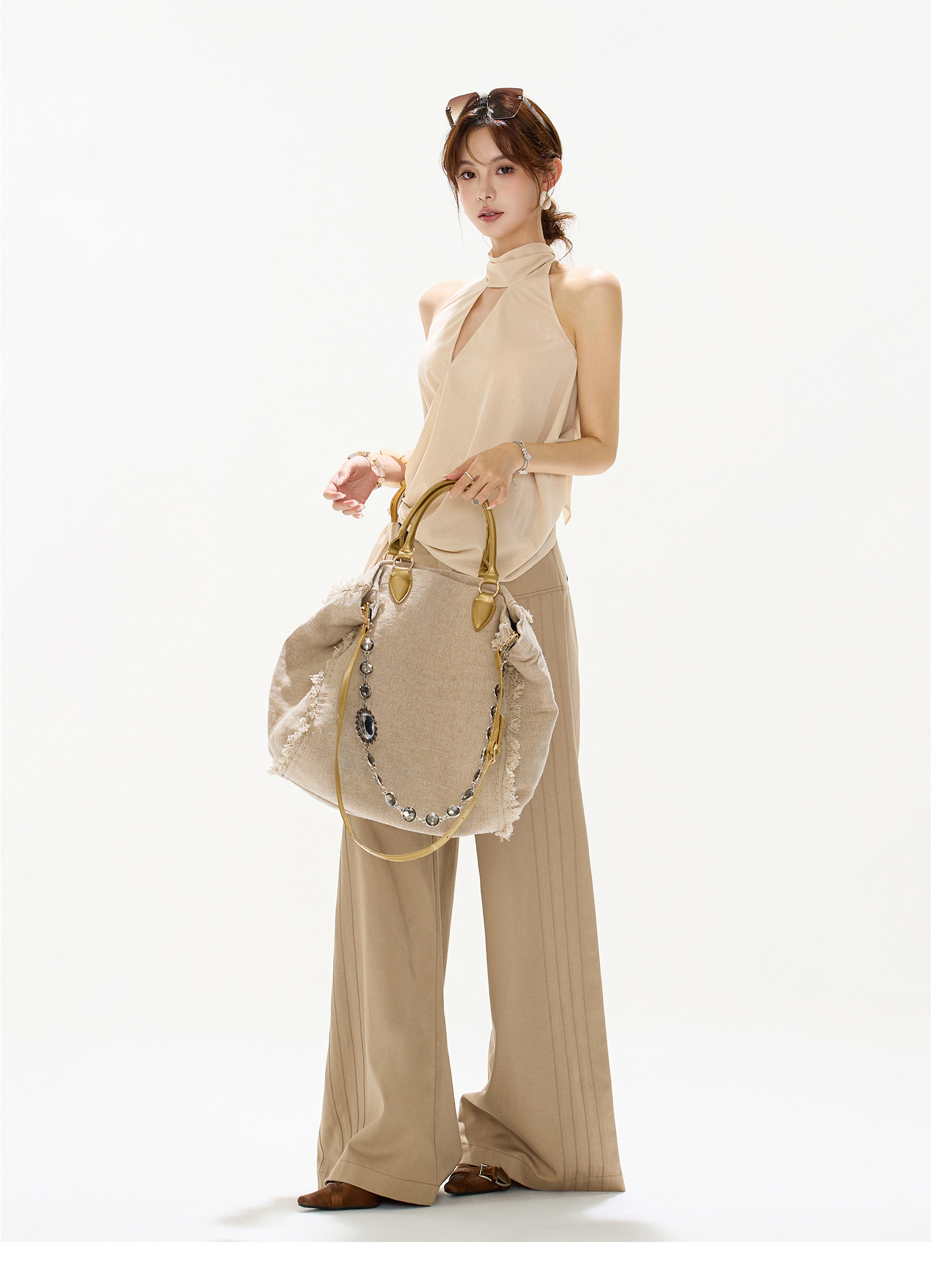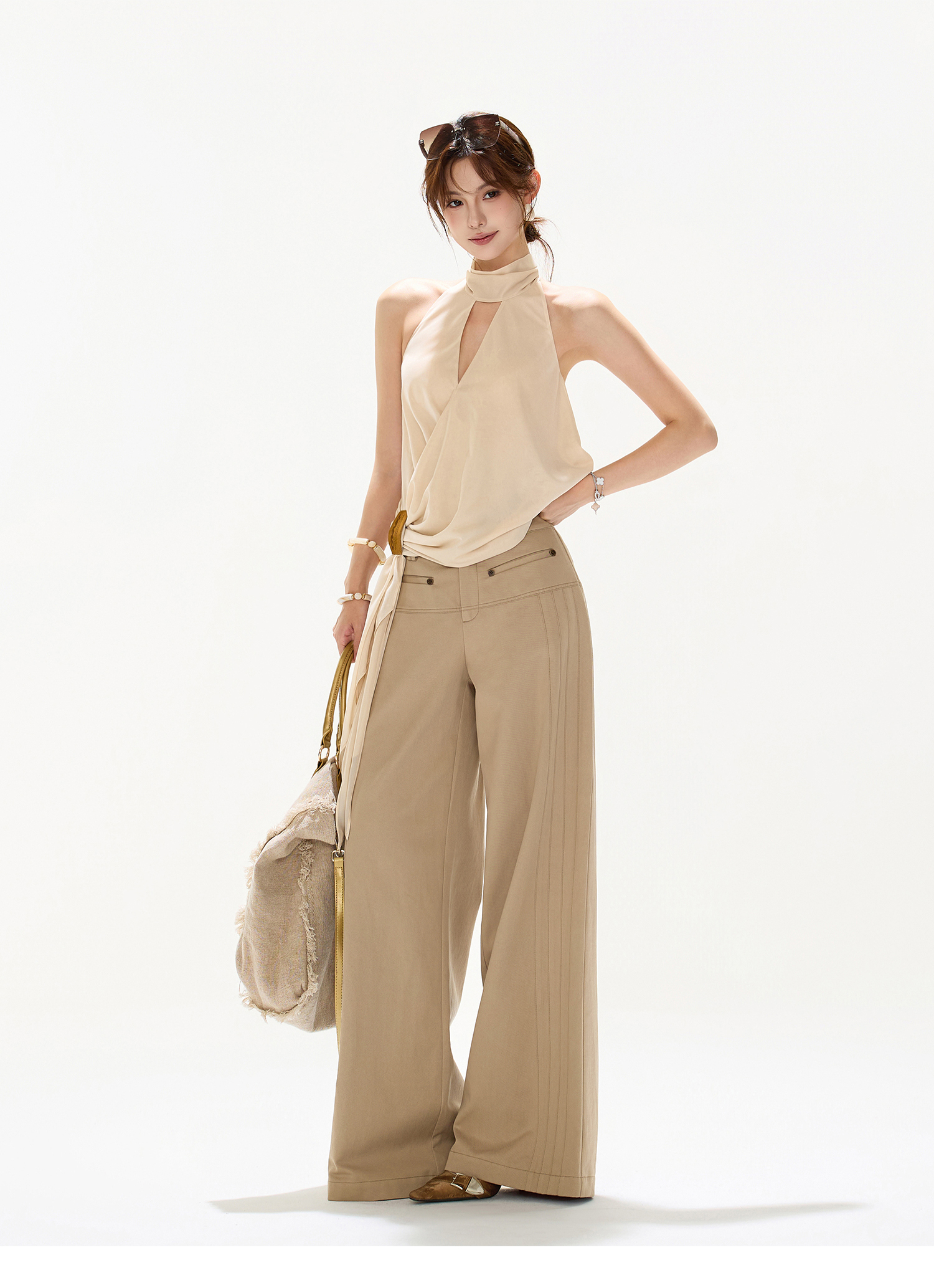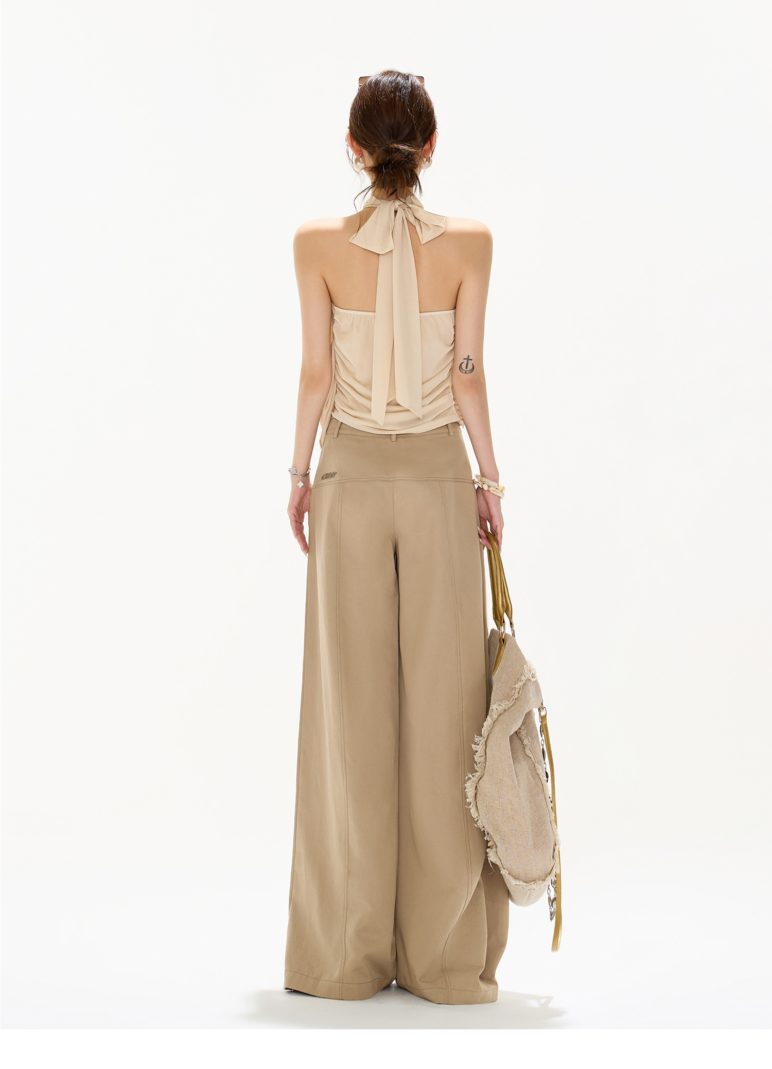RessaLina Women's Drape Neck Cross Tie Tank - Light Apricot Cropped V-Neck, 100% Polyester
