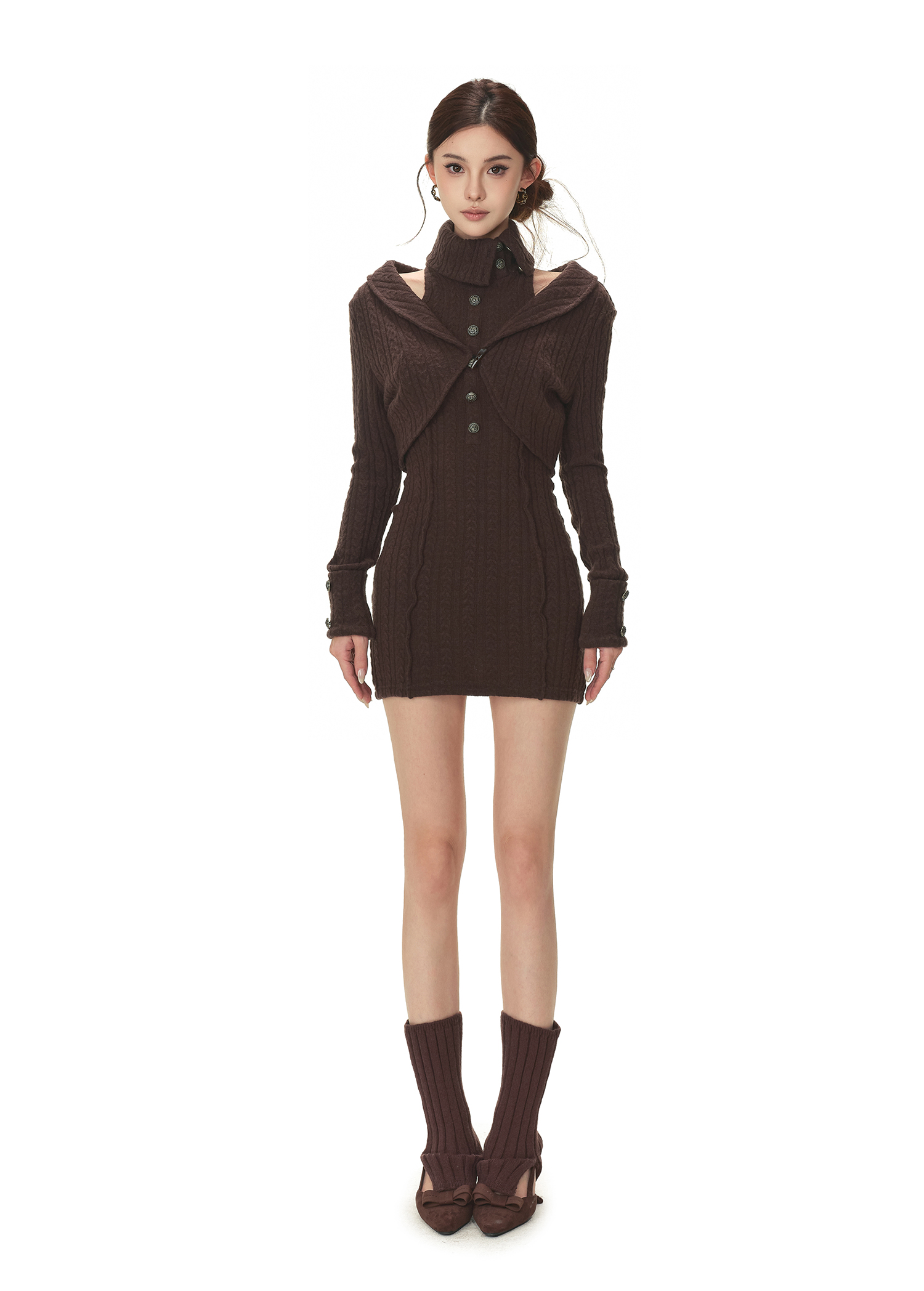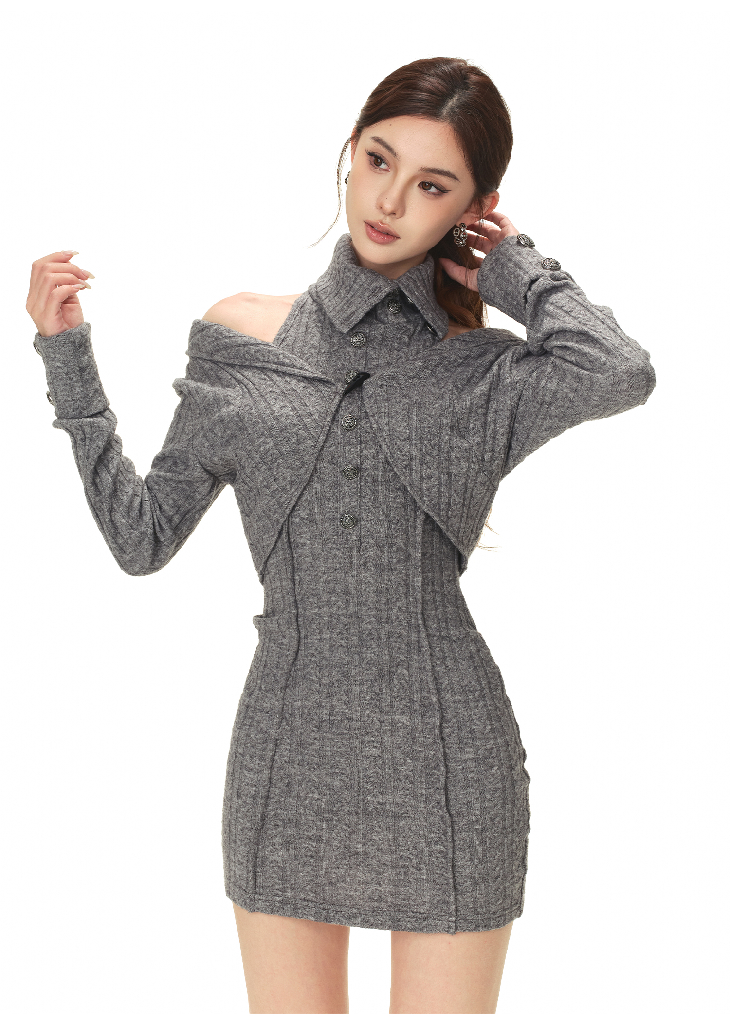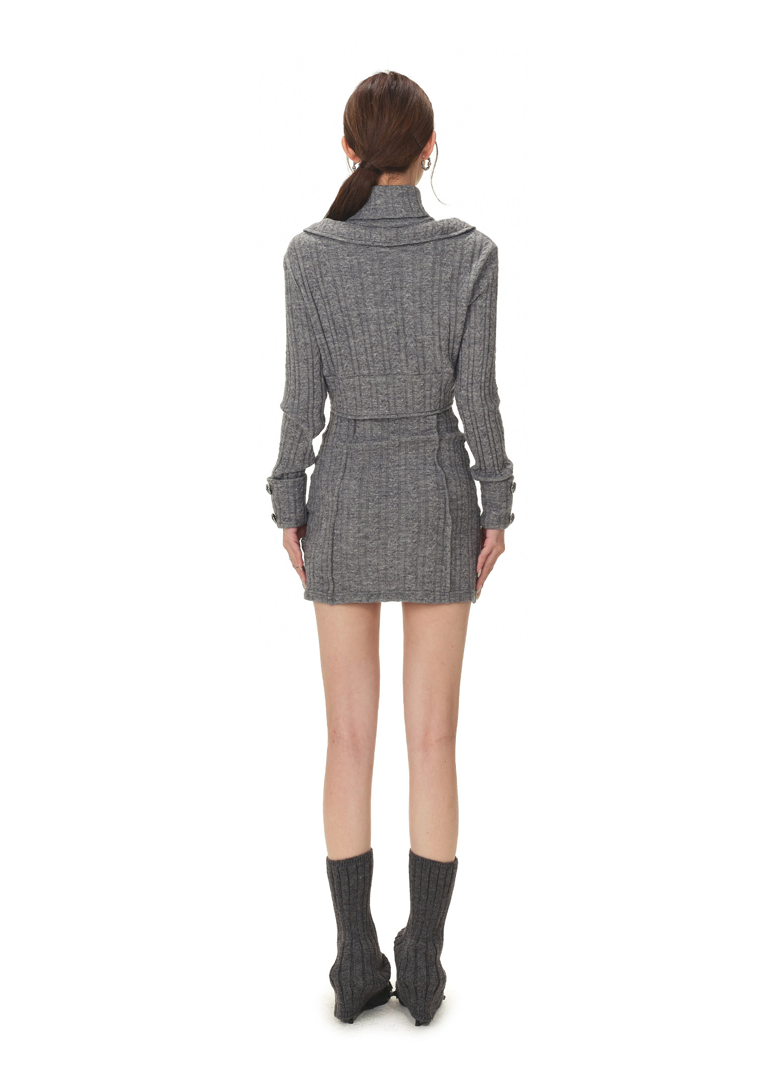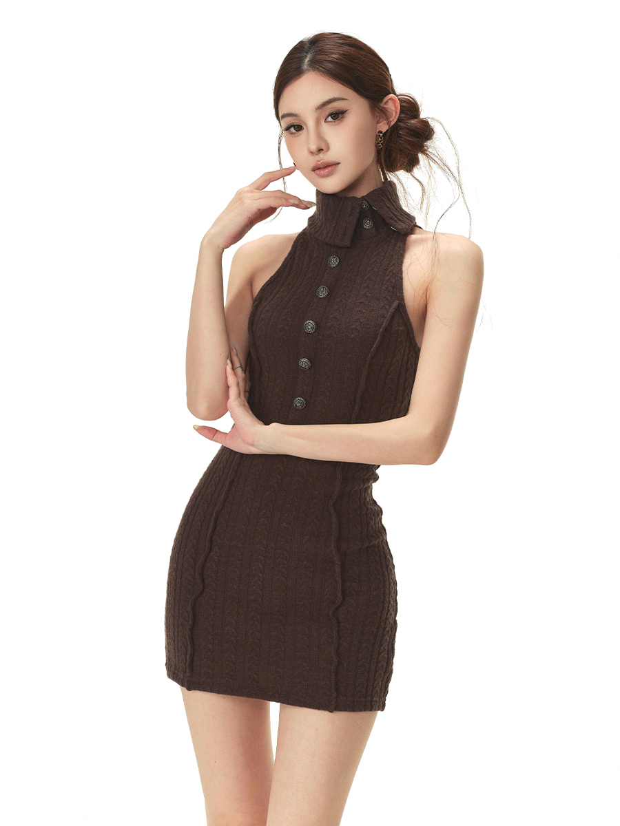 RessaLina Women's Drape Neck Knit Set - Crop Dress & Open Cardigan, Retro Slim Spicy