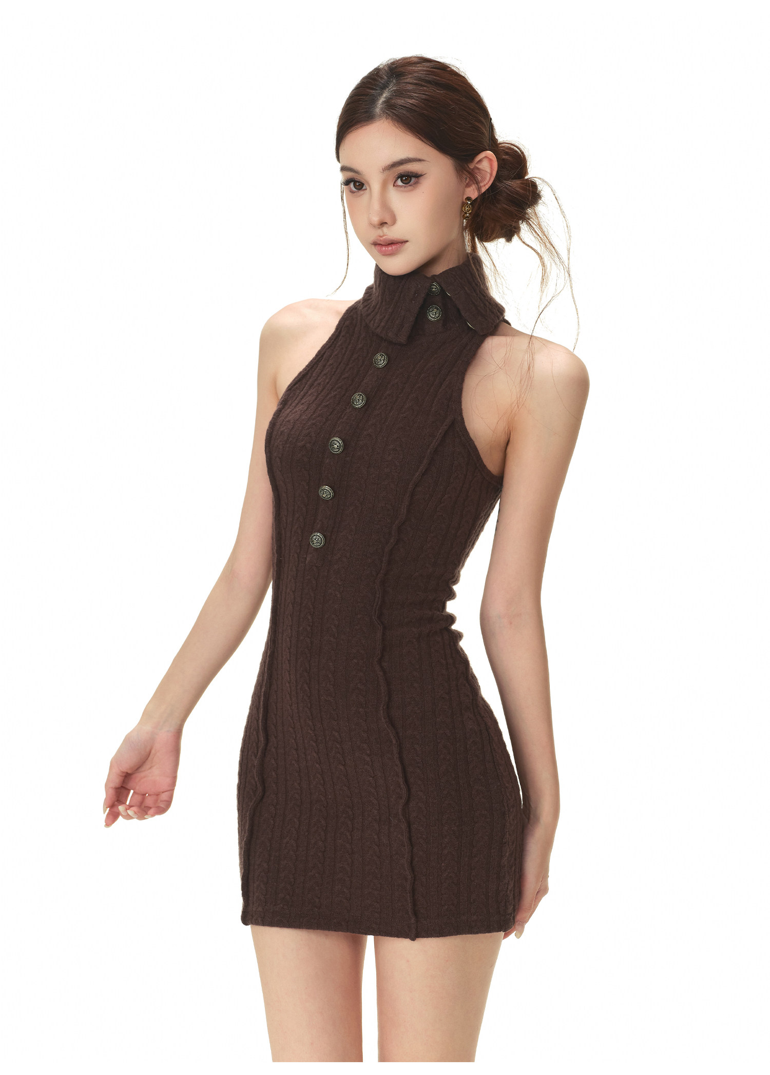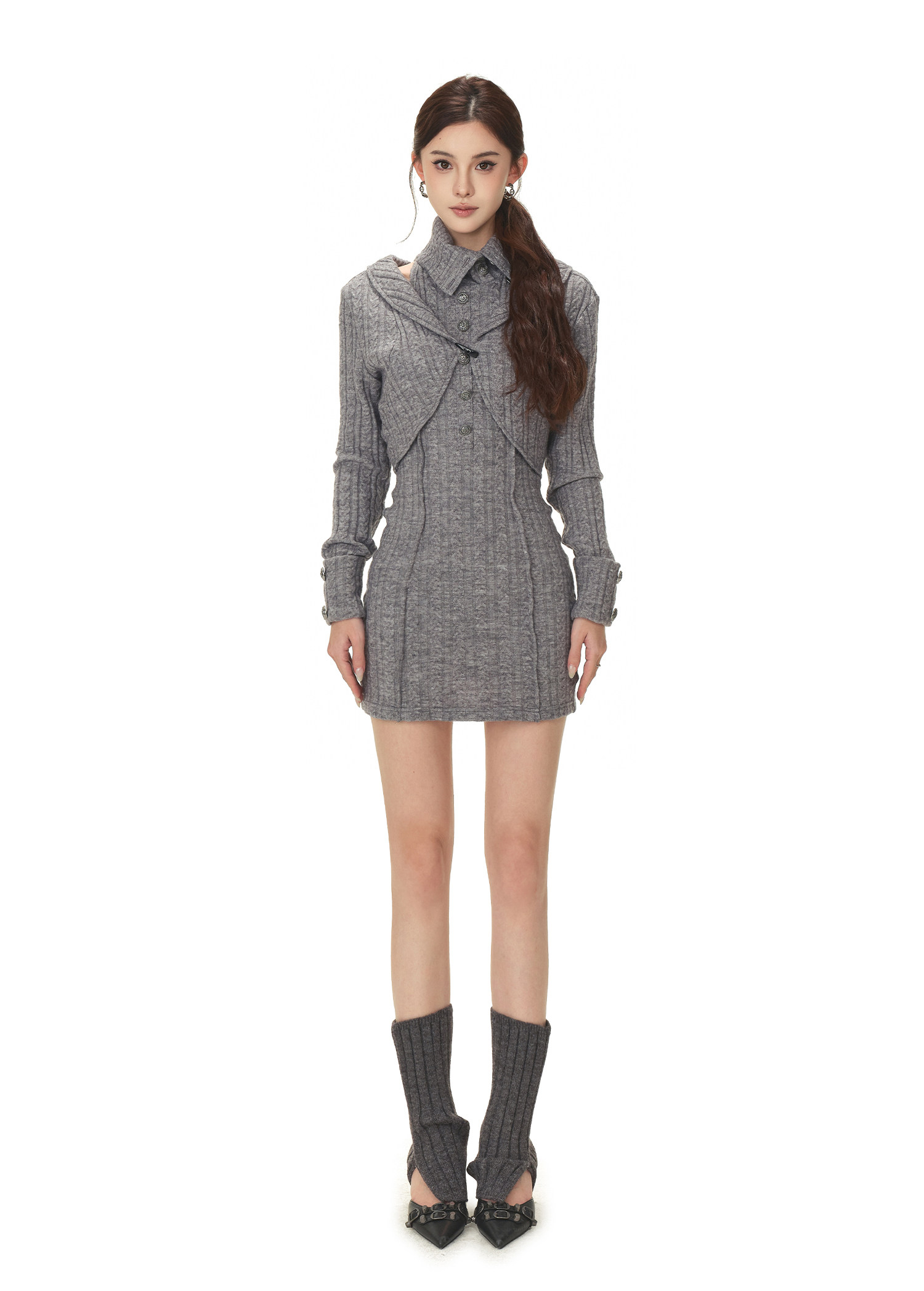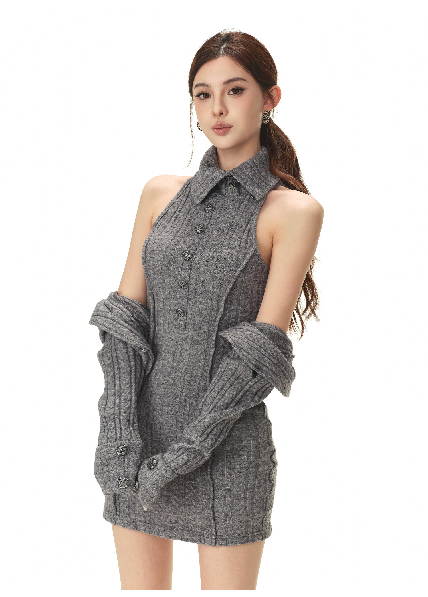 RessaLina Women's Drape Neck Knit Set - Crop Dress & Open Cardigan, Retro Slim Spicy