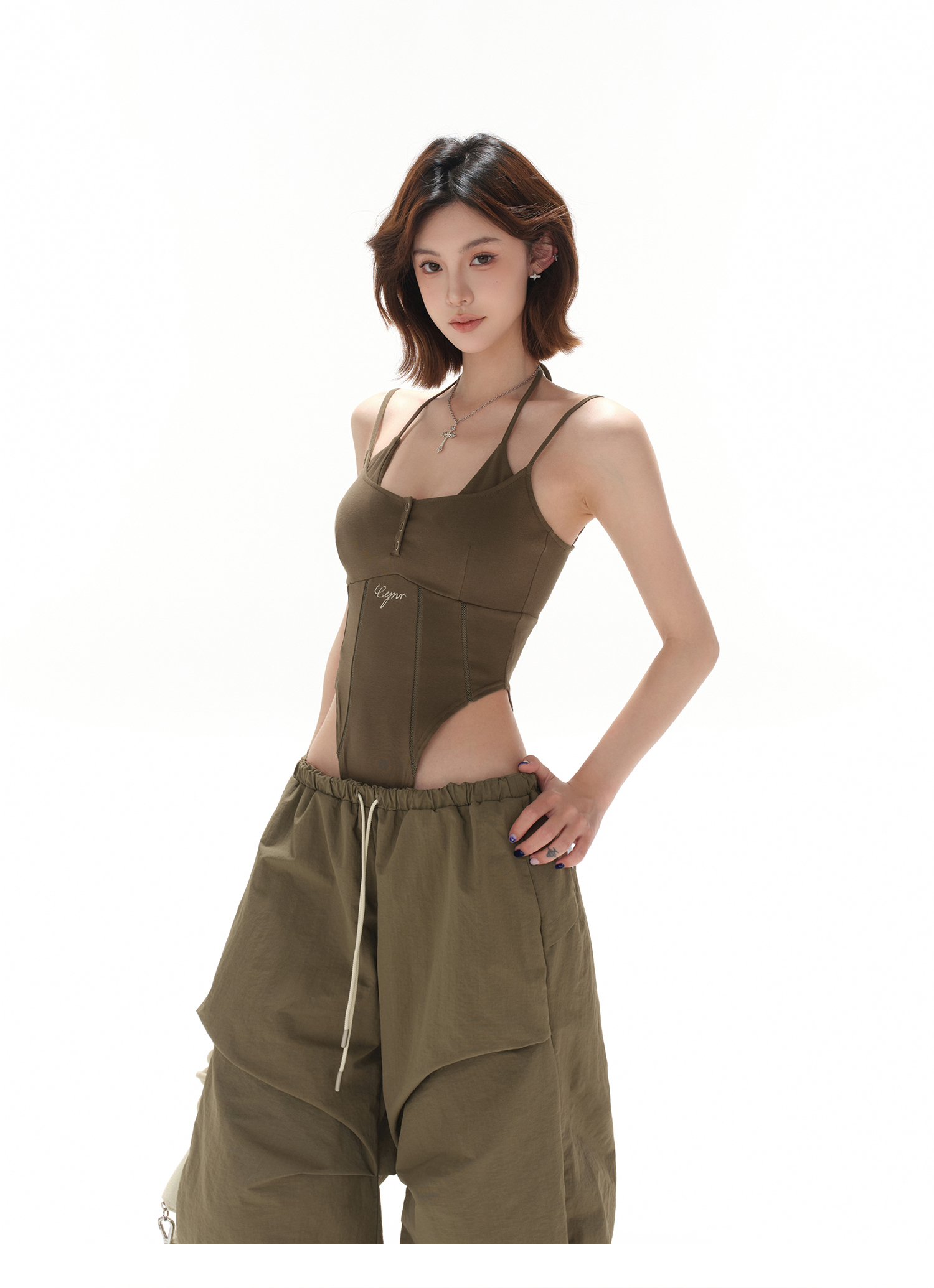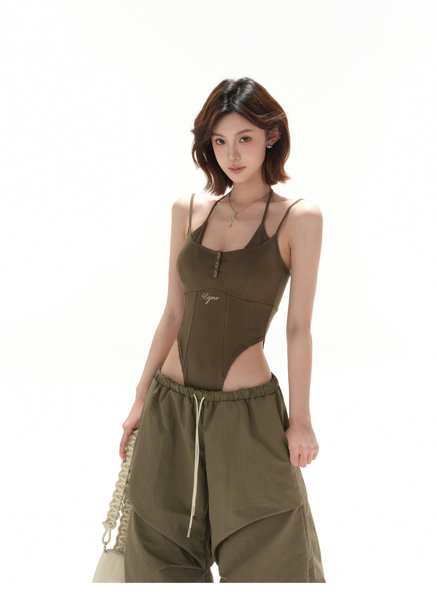CYNR original design comfortable pure cotton fake two-piece suspender lace one-piece vest slim fish bone top with chest pad