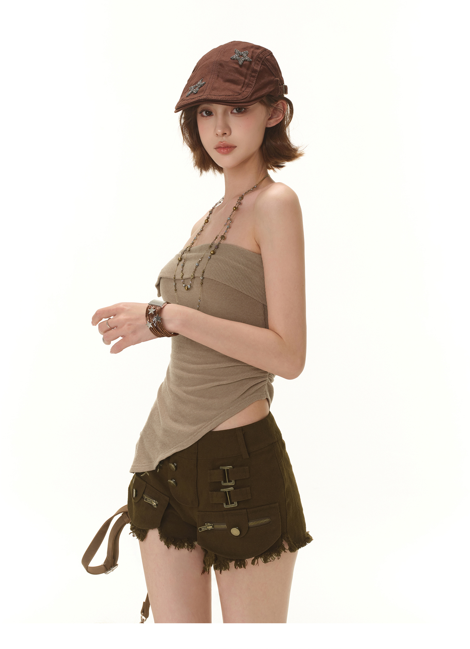 RessaLina Women's Retro Drawstring Asymmetric Tank - High Elastic Knit Cropped Top Summer