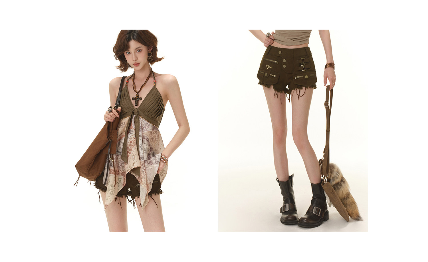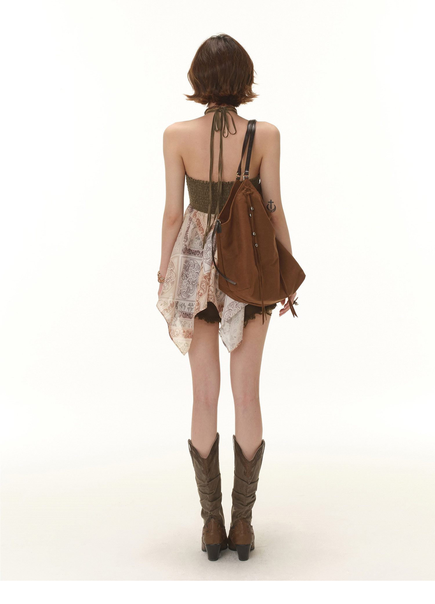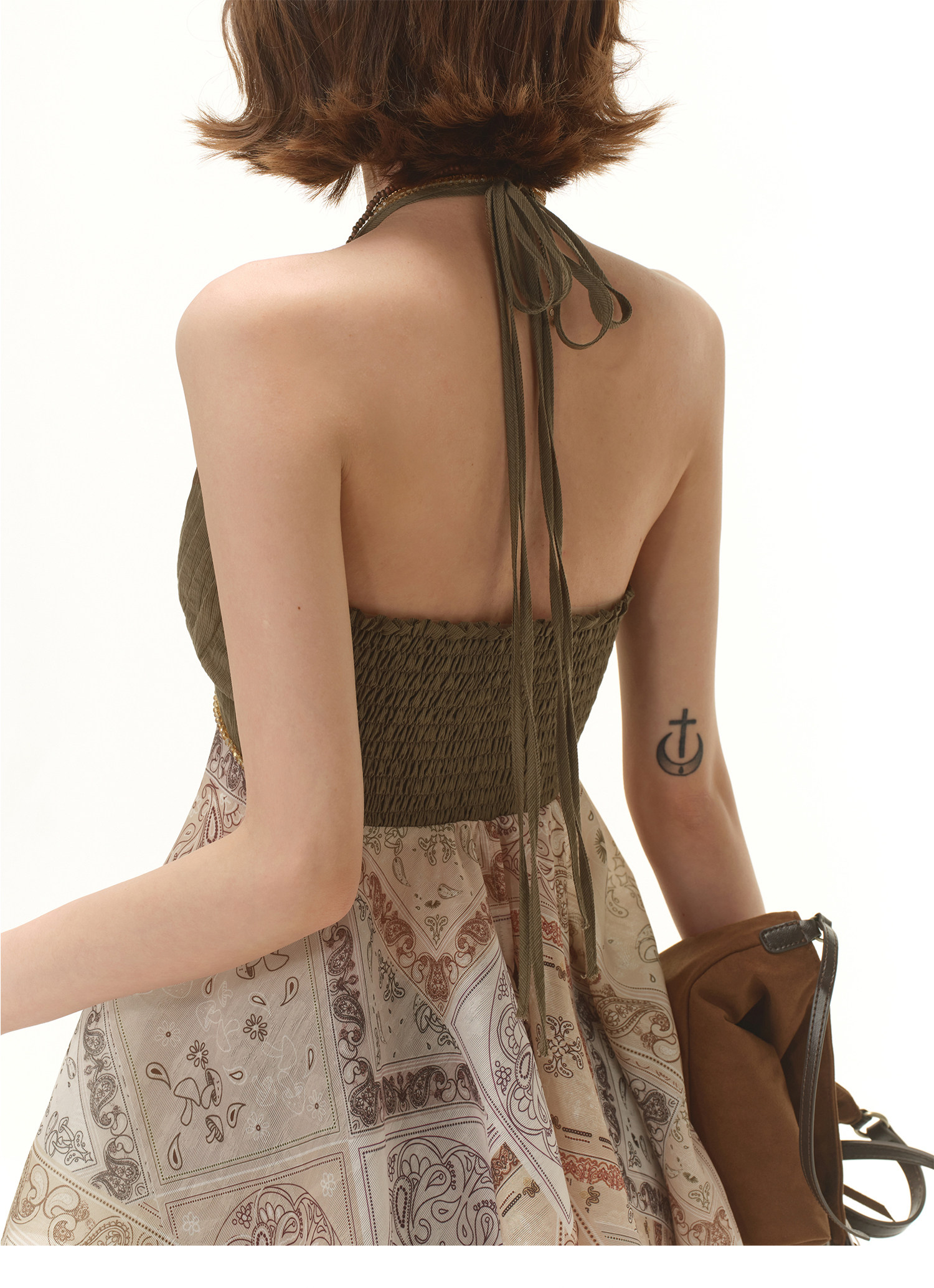RessaLina Women's Tie Front Tank Top - Boho Cropped V-Neck with Pleated Skirt Hem, Earth Tone